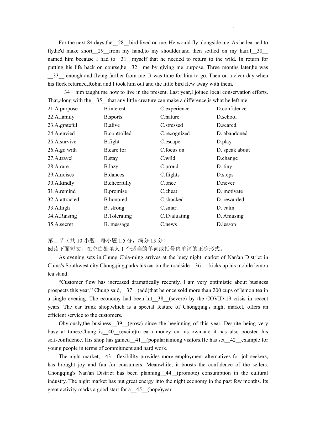 一、山东省济南市2023届高三二模高三英语(新高考)