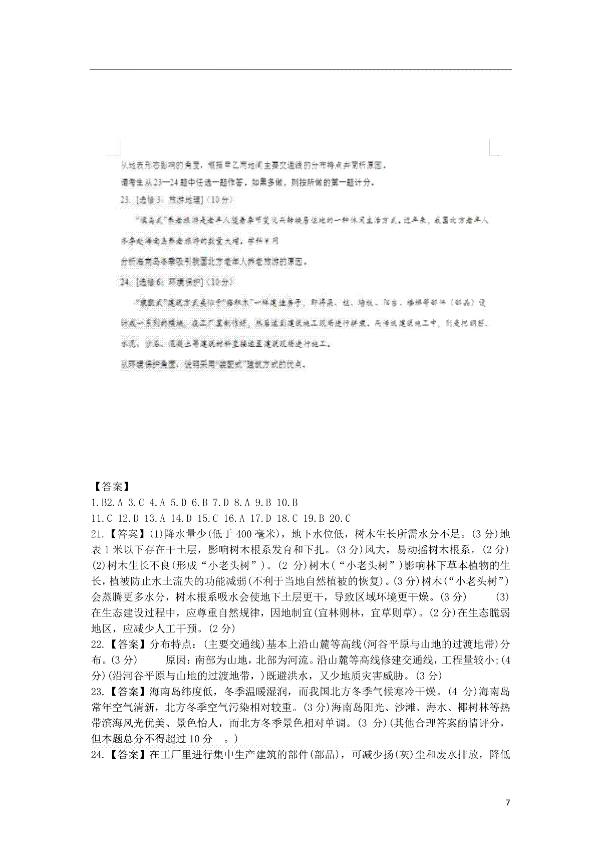 一、青海省海南洲2018年中考地理真题试题(扫描版,含答案)
