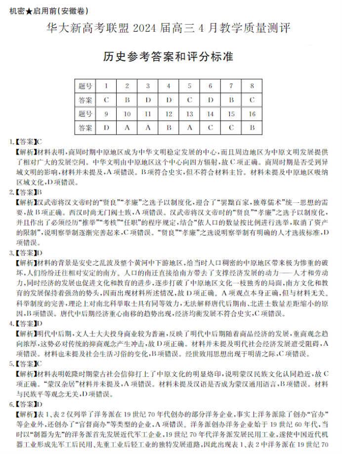 2024华大新高考联盟高三4月教学测评于近期开考,本次考试对考生影响力大试题参考价值大,为方便大家复习,小编在下文为大家整理了华大新高考联盟2024高三4月教学测评的历史试题及答案,供大家查看!