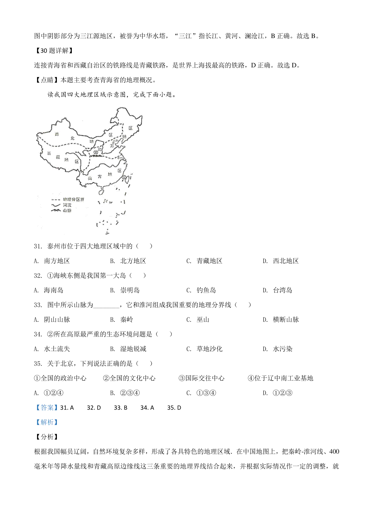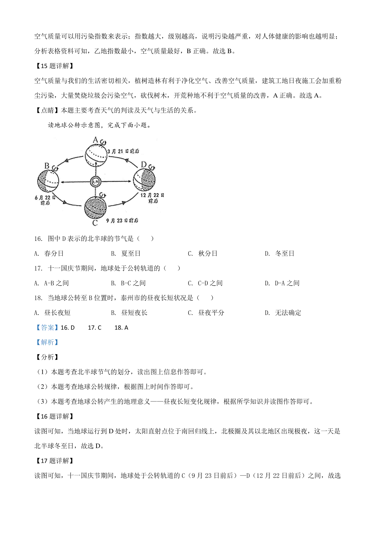 如果你想下载精品解析:江苏省泰州市2020年初中地理会考试题(解析版)DOC或PDF版,请点击本文末链接!