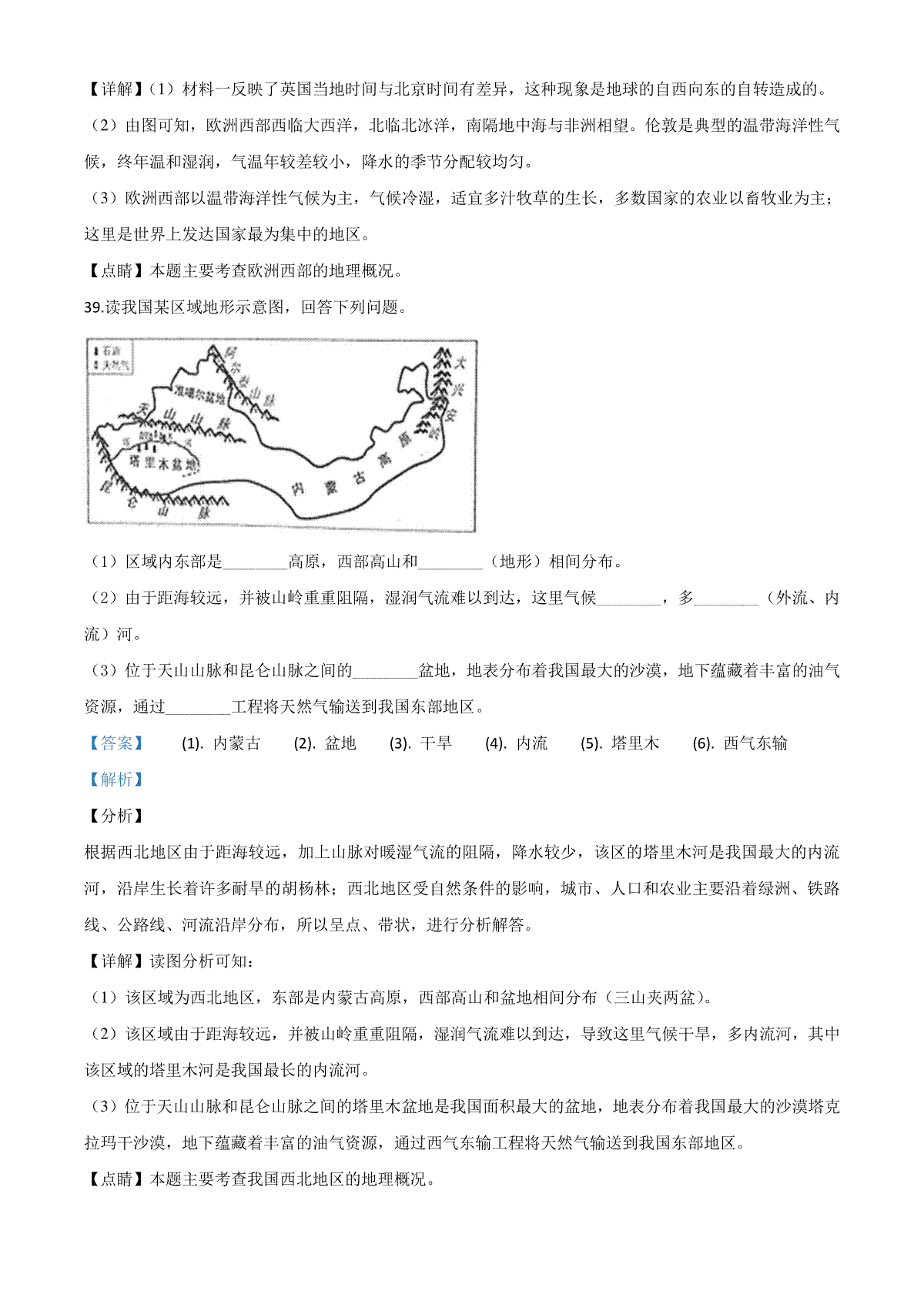 一、精品解析:江苏省泰州市2020年初中地理会考试题(解析版)