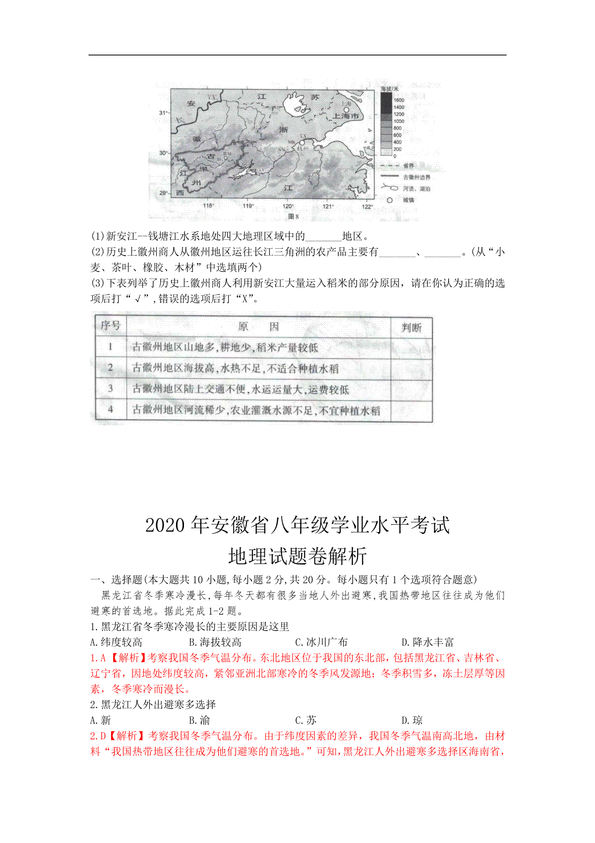 如果你想下载2020安徽省中考地理(解析版)DOC或PDF版,请点击本文末链接!
