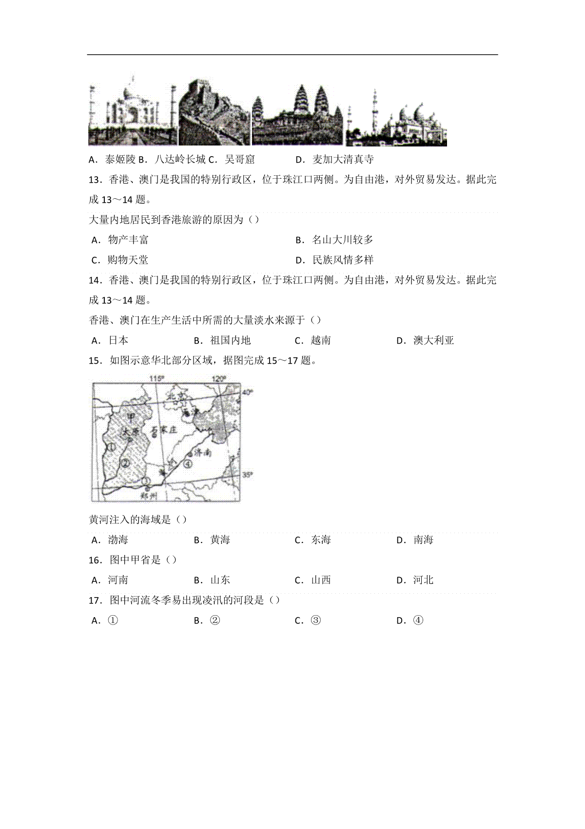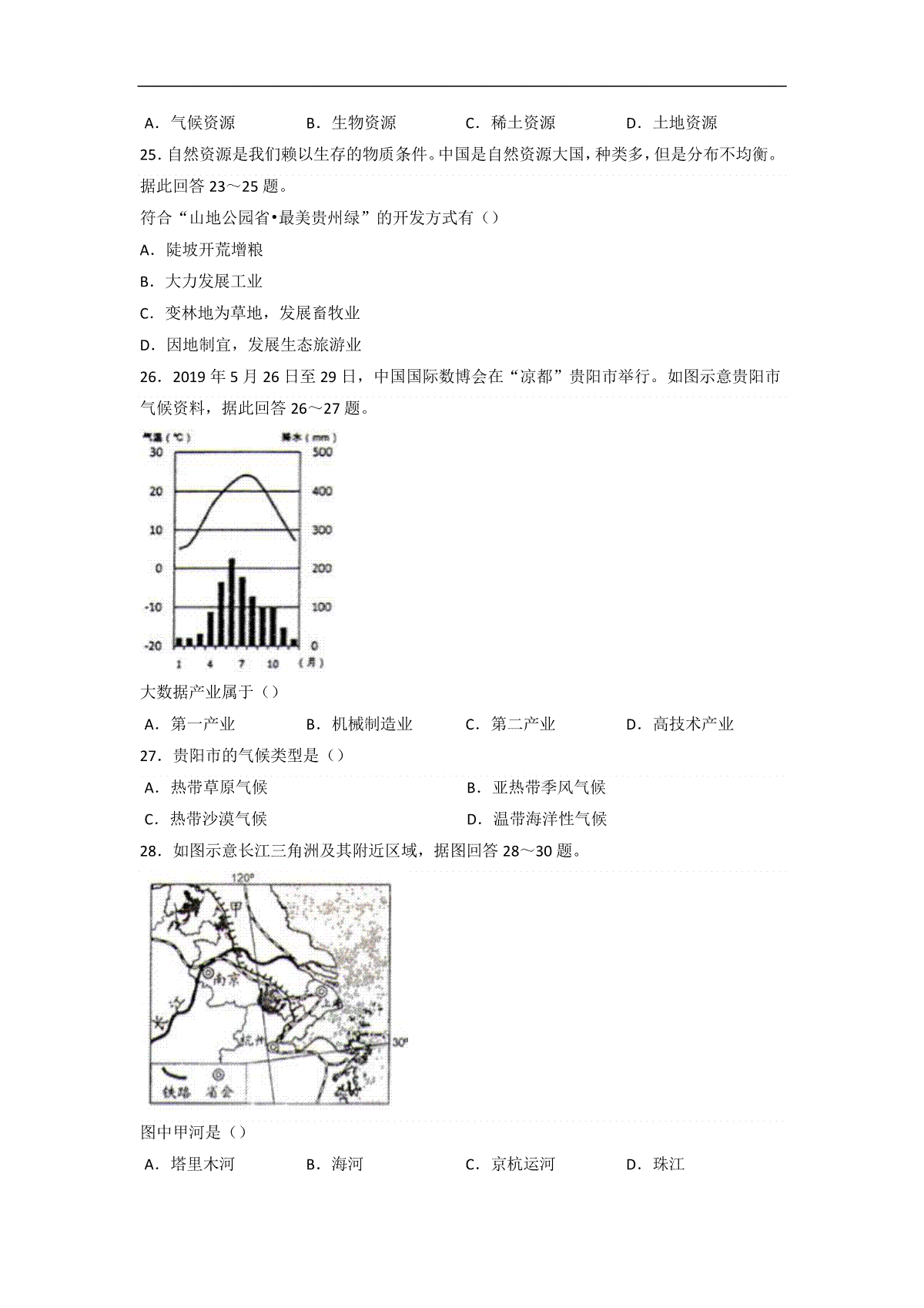 一、2020年贵州省遵义市中考地理试卷(word版,含解析)