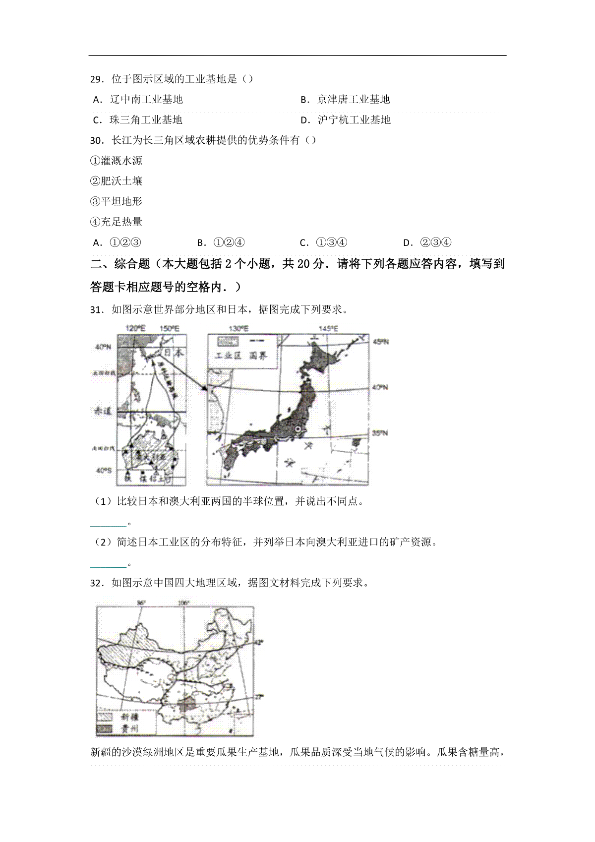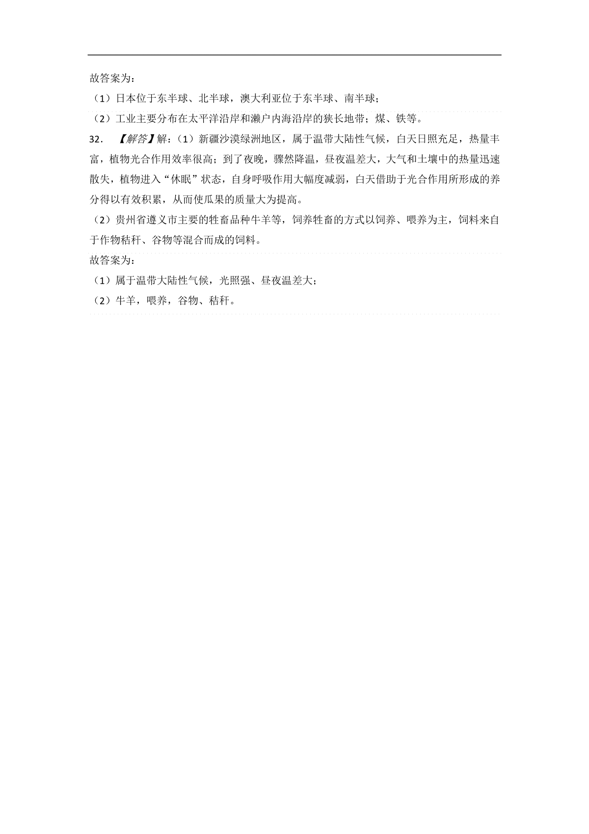 如果你想下载2020年贵州省遵义市中考地理试卷(word版,含解析)DOC或PDF版,请点击本文末链接!