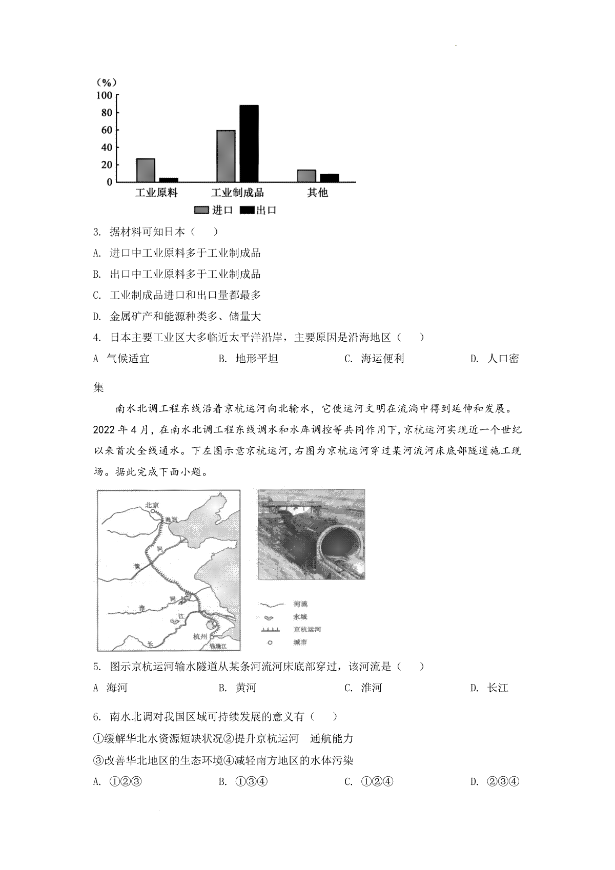 一、精品解析:2022年安徽省中考地理真题(原卷版)