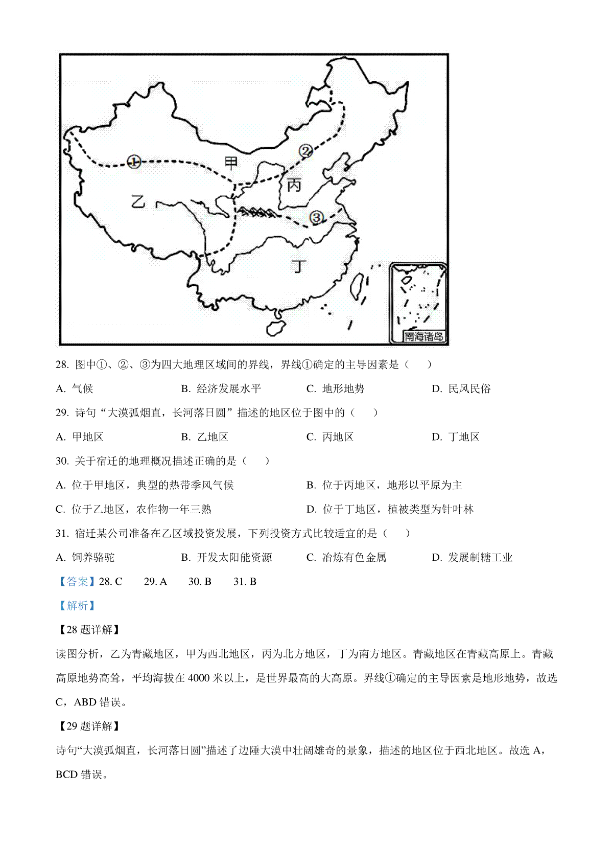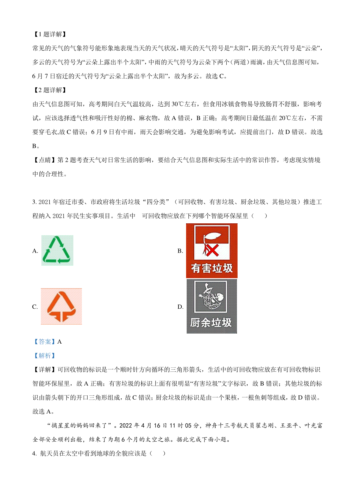 如果你想下载精品解析:2022年江苏省宿迁市中考地理真题(解析版)DOC或PDF版,请点击本文末链接!