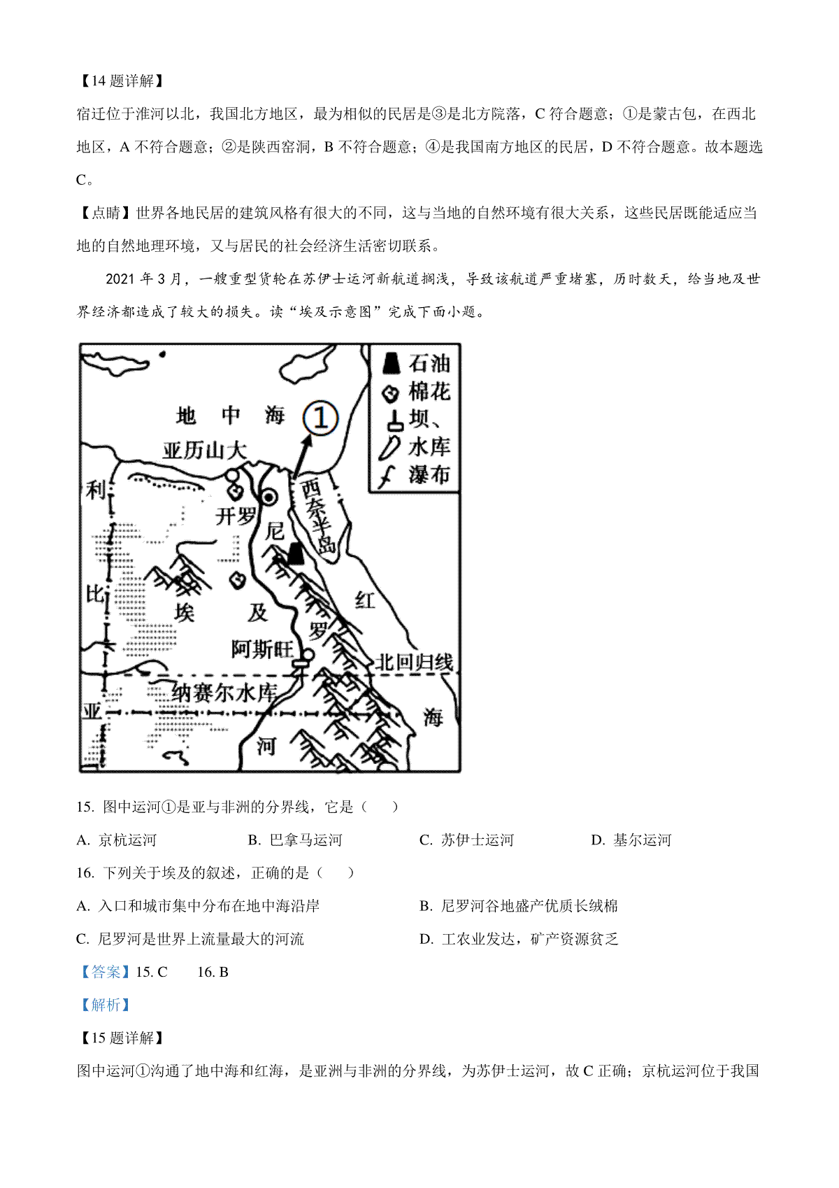 一、精品解析:2022年江苏省宿迁市中考地理真题(解析版)