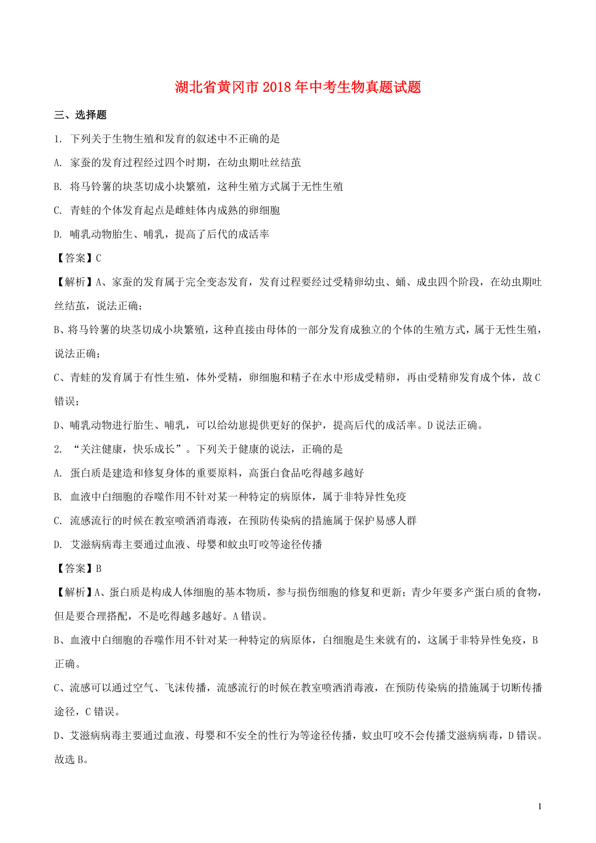 3.湖北省随州市2018年中考理综(生物部分)真题试题(含解析)