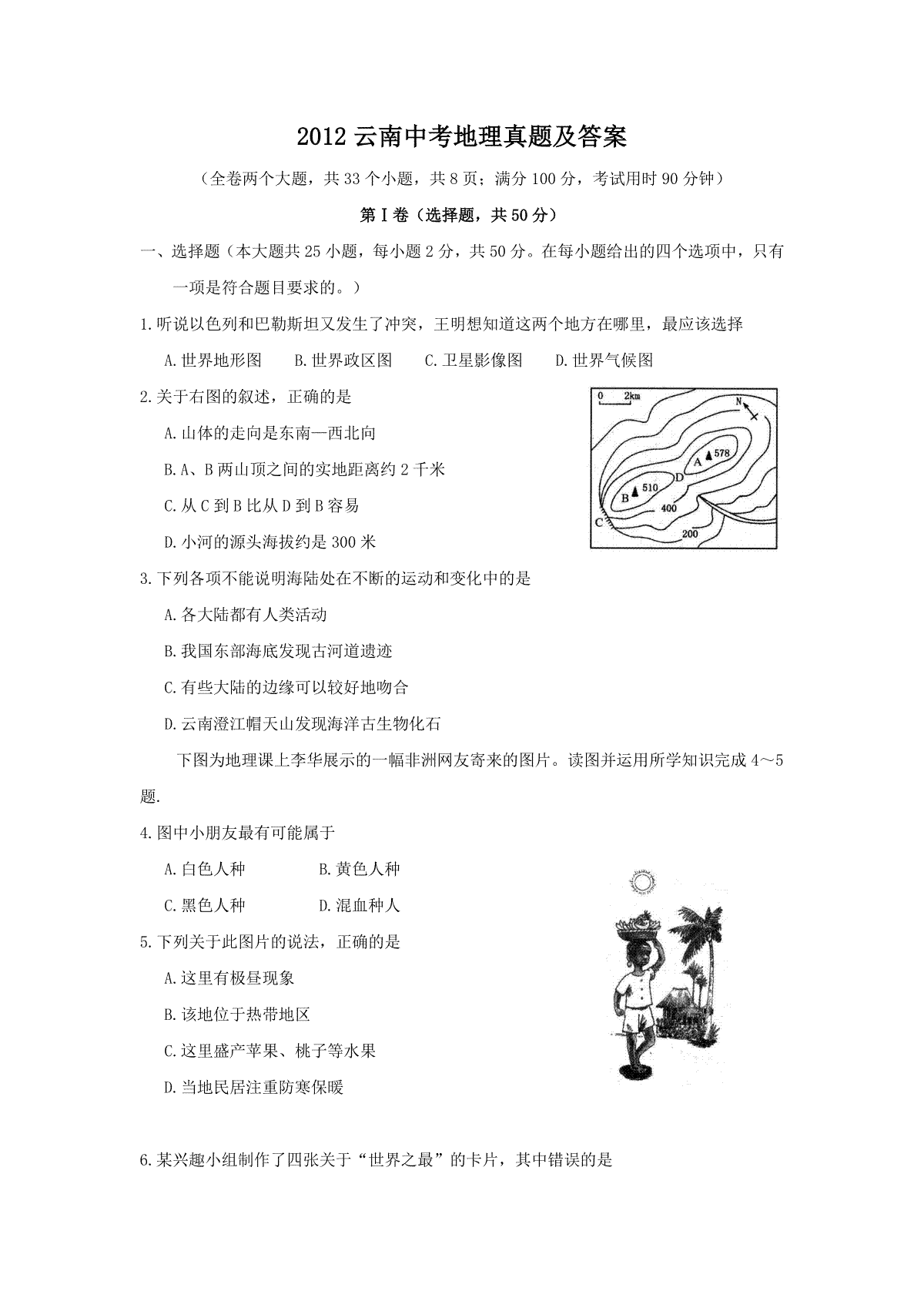如果你想下载2012云南中考地理真题及答案DOC或PDF版,请点击本文末链接!