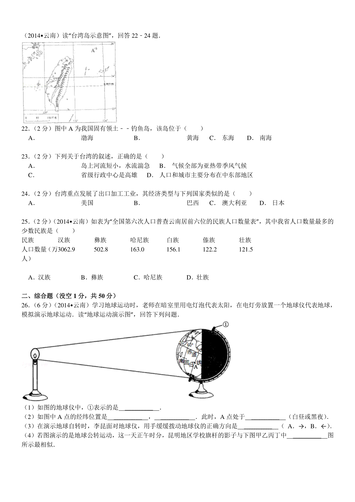 一、2014年云南省中考地理试卷及解析