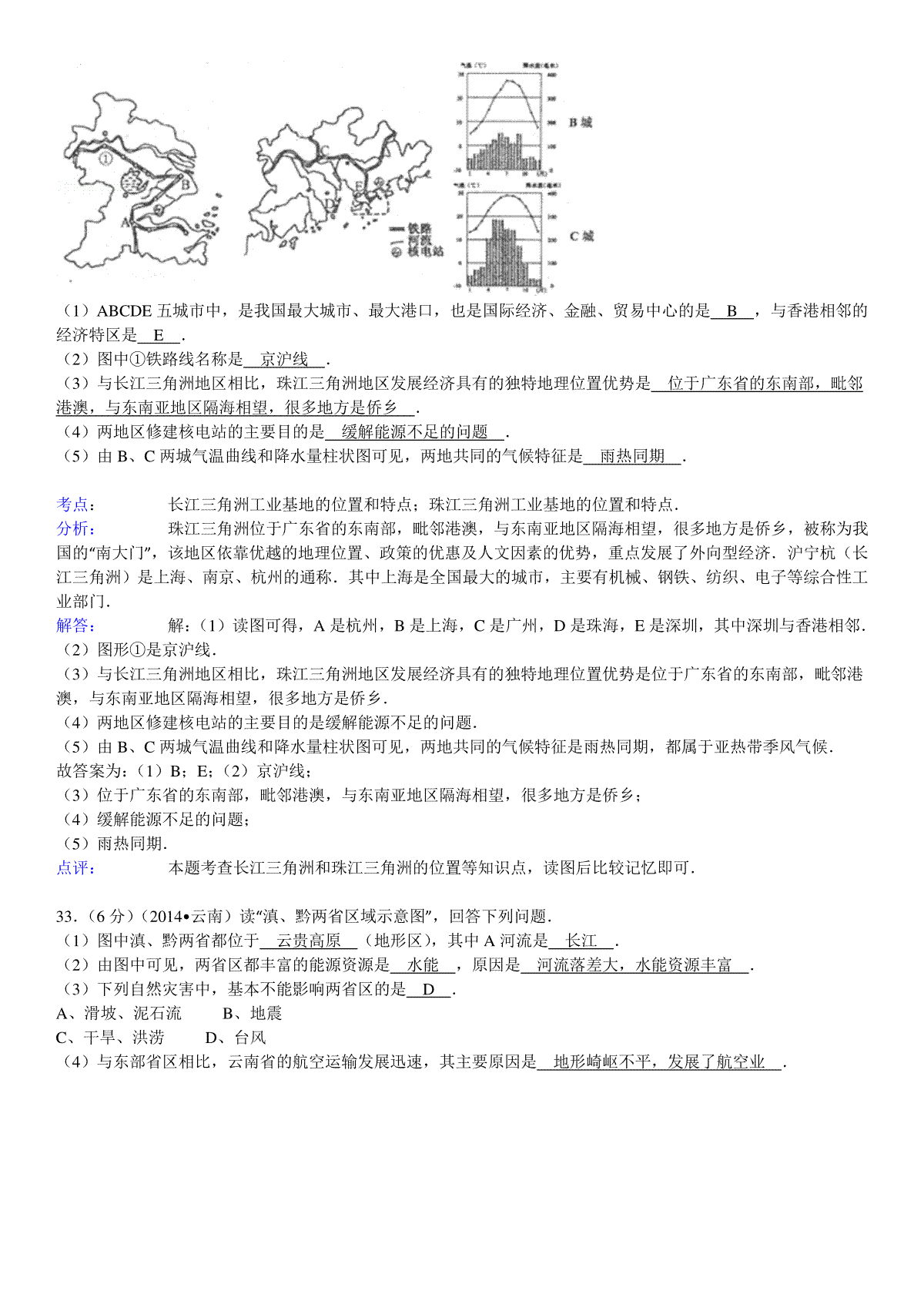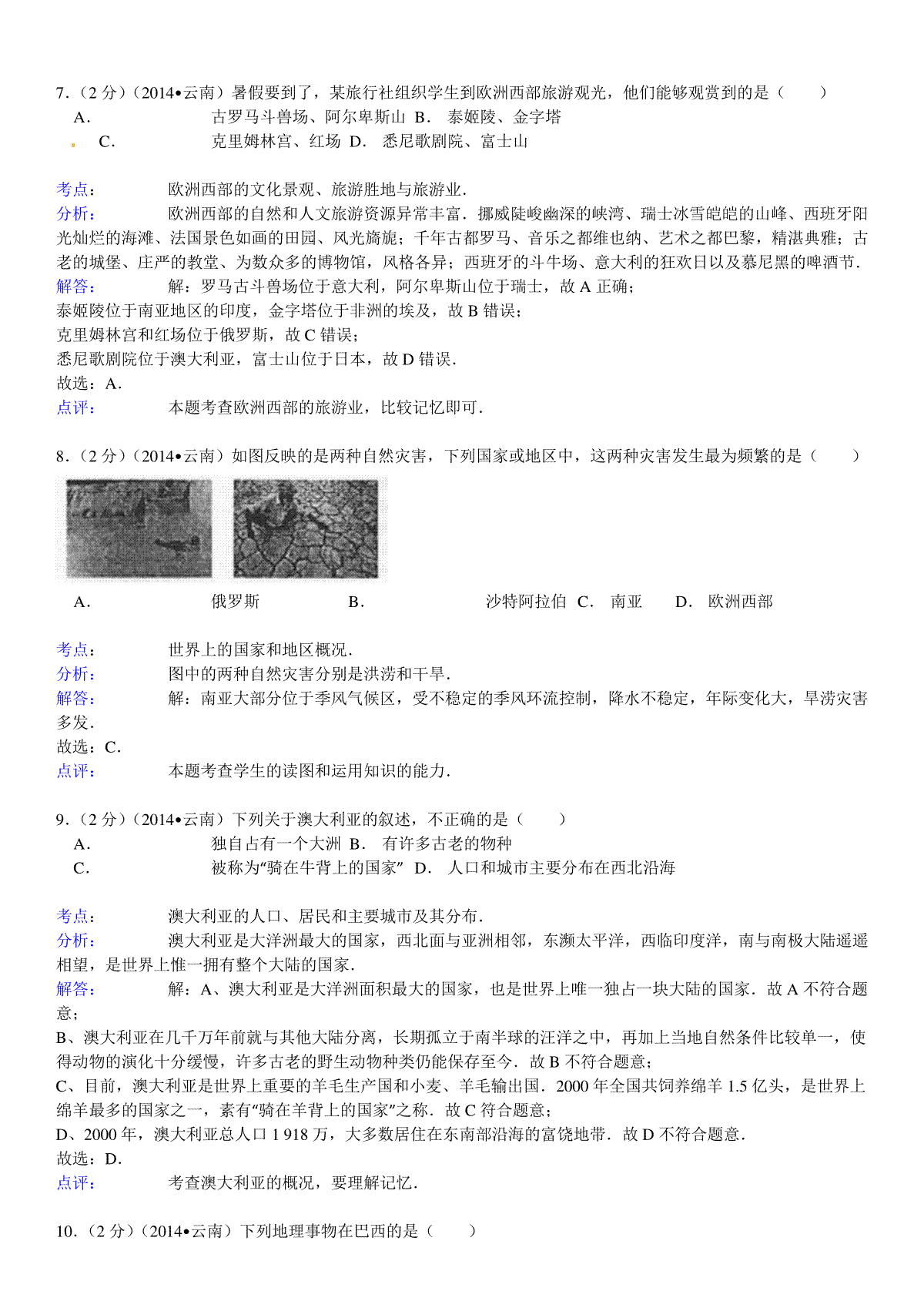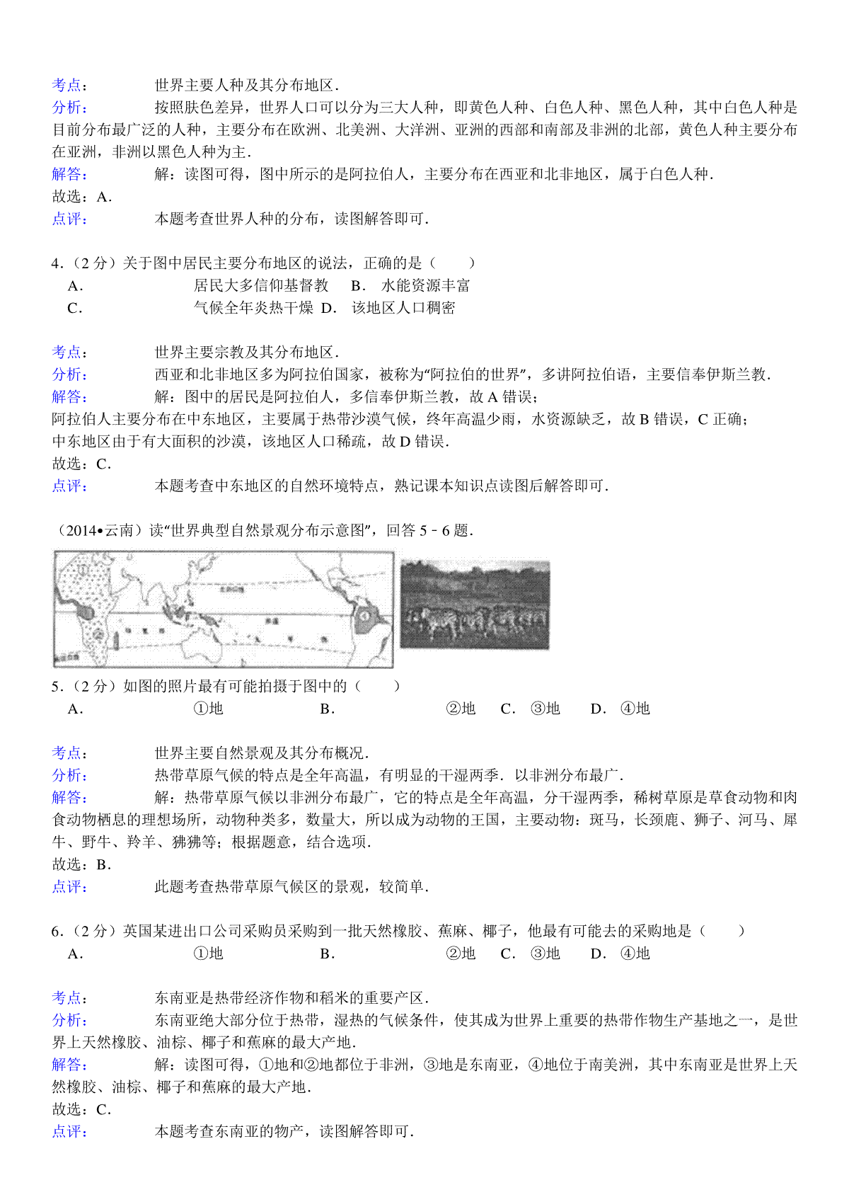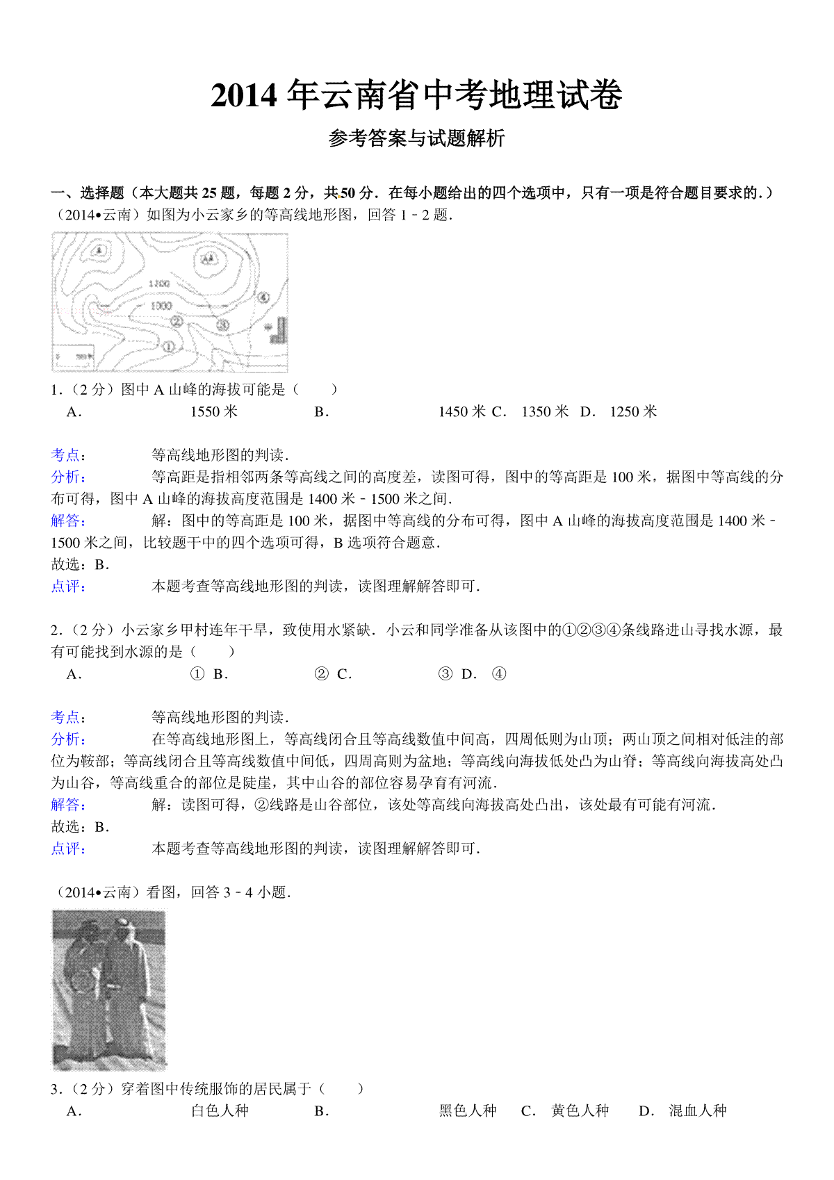 如果你想下载2014年云南省中考地理试卷及解析DOC或PDF版,请点击本文末链接!