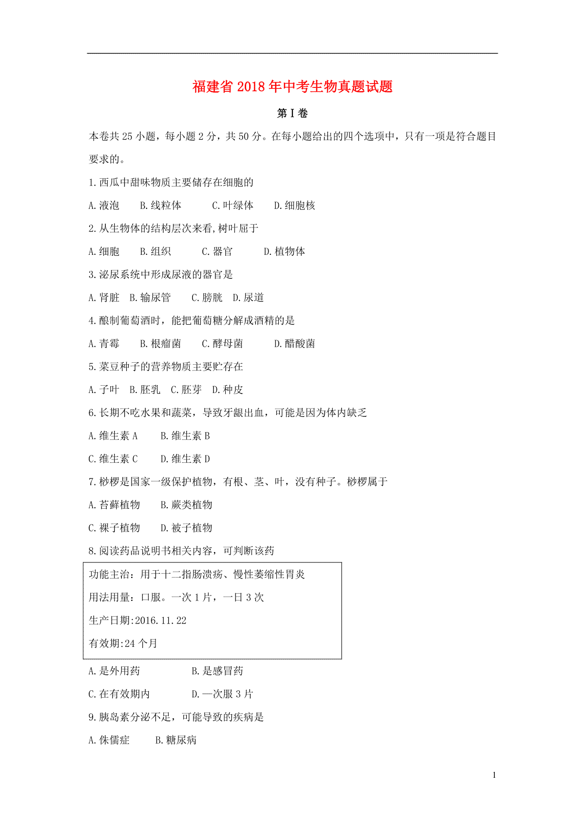3.甘肃省白银市2018年中考生物真题试题(扫描版,含答案)