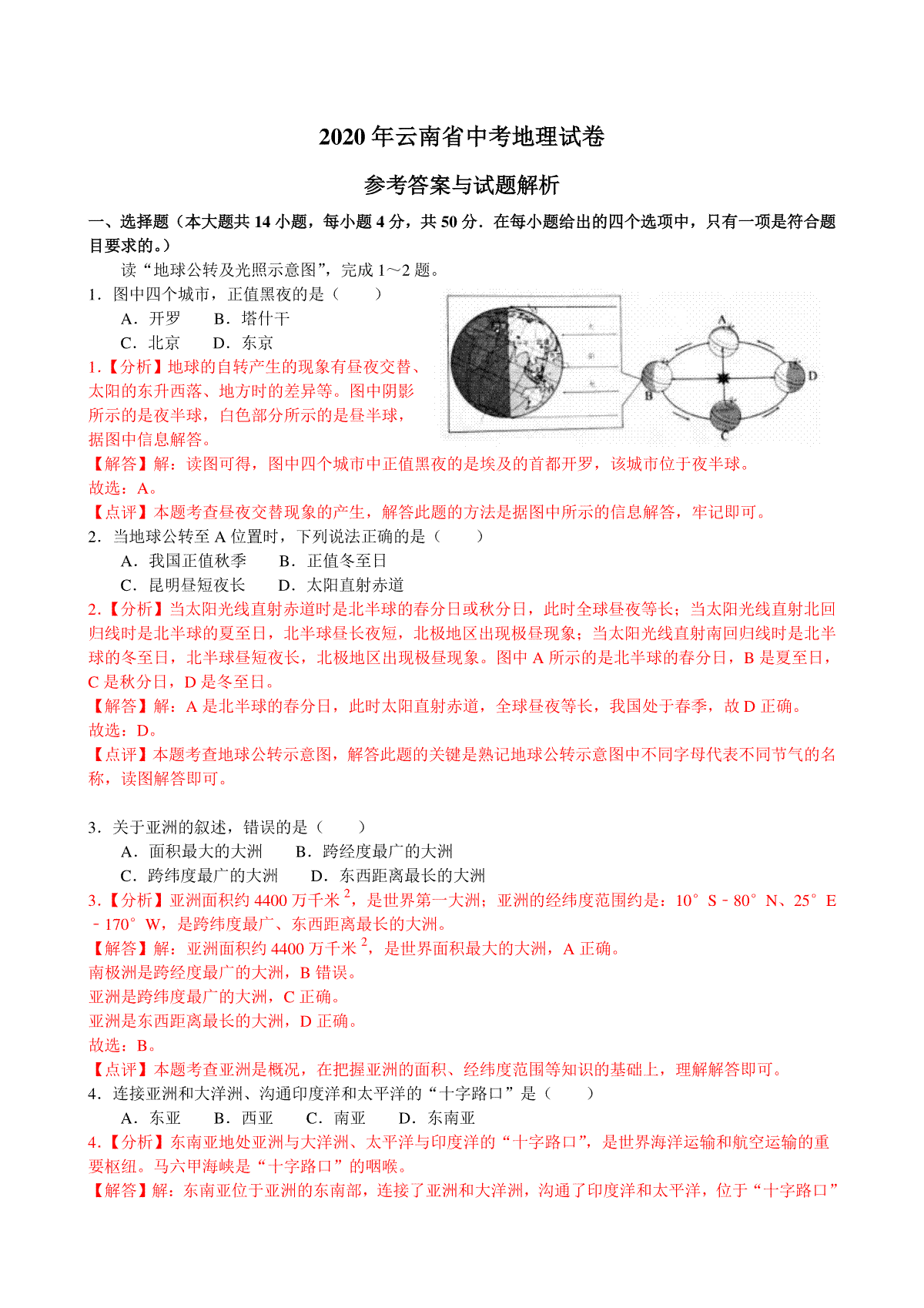 如果你想下载2020年云南省中考地理试卷_解析版_DOC或PDF版,请点击本文末链接!