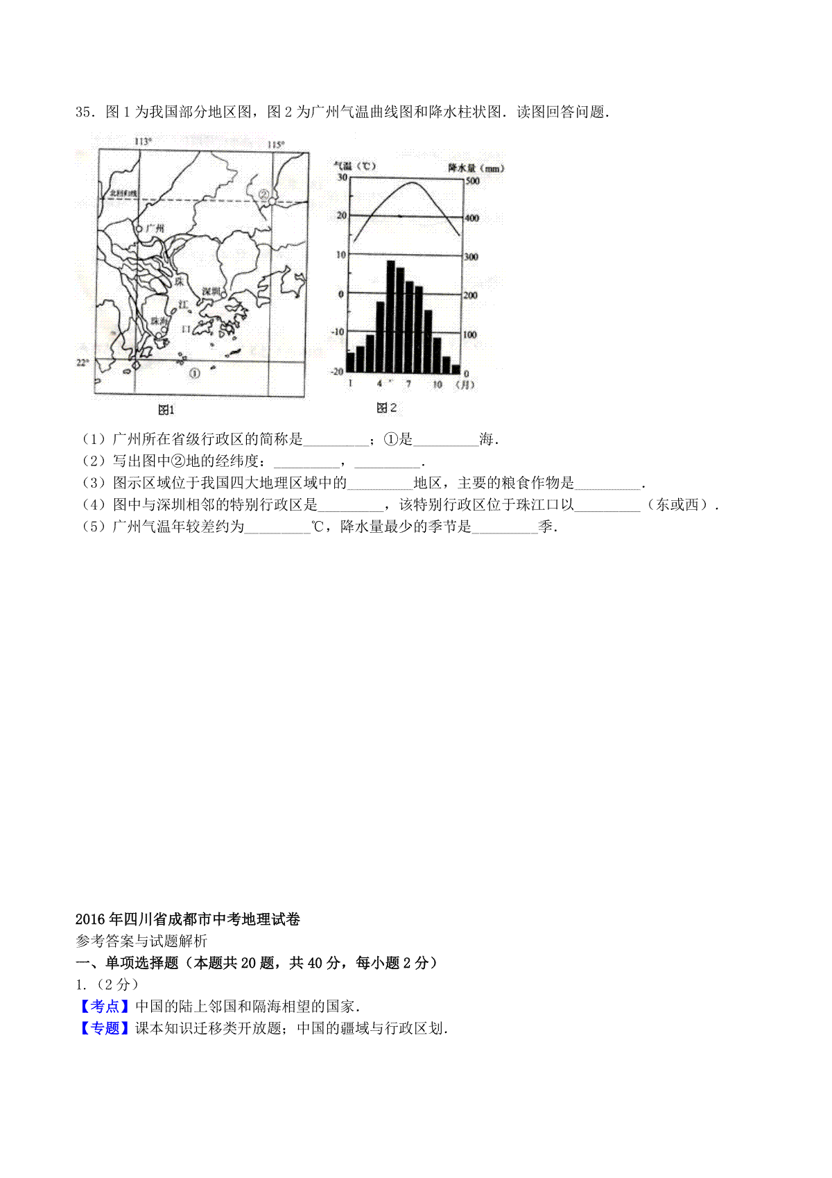 如果你想下载2016年四川省成都市中考地理真题及答案DOC或PDF版,请点击本文末链接!