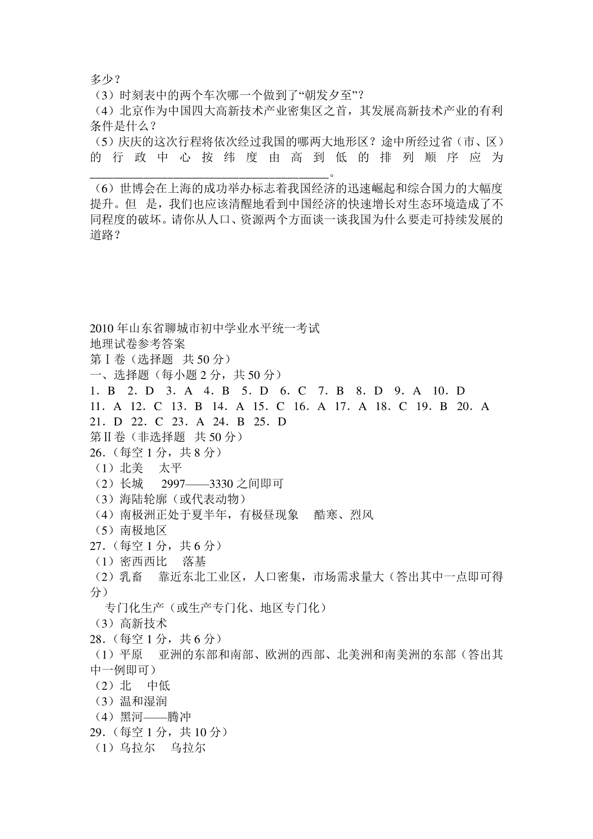 如果你想下载2010年山东聊城中考地理试卷及答案DOC或PDF版,请点击本文末链接!
