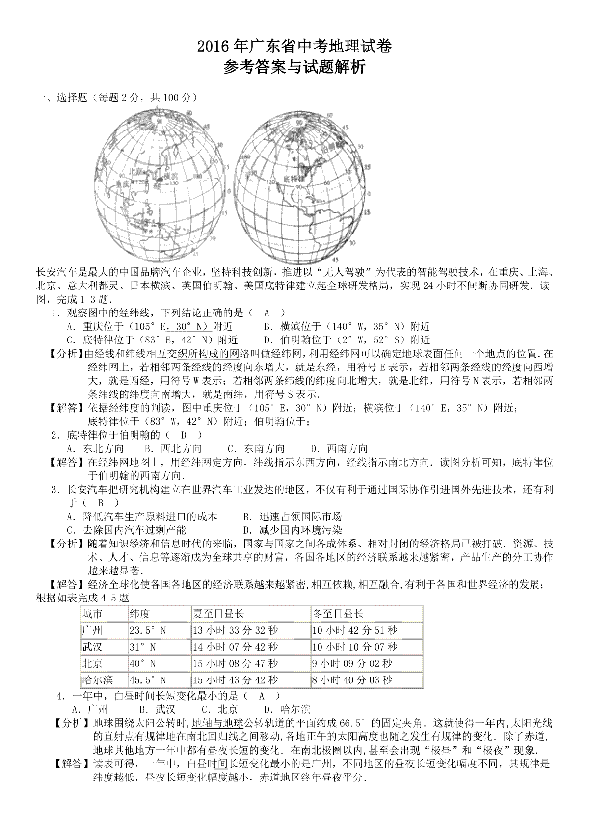 如果你想下载2016年广东省地理中考试题及答案DOC或PDF版,请点击本文末链接!