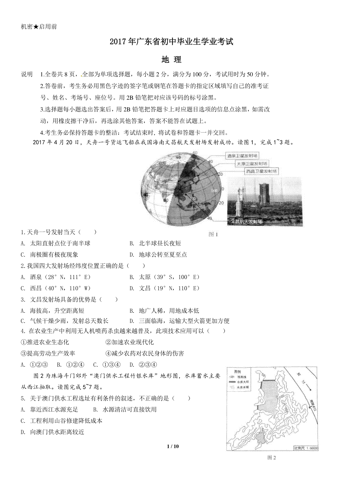 如果你想下载2017年广东省地理中考试题及答案DOC或PDF版,请点击本文末链接!
