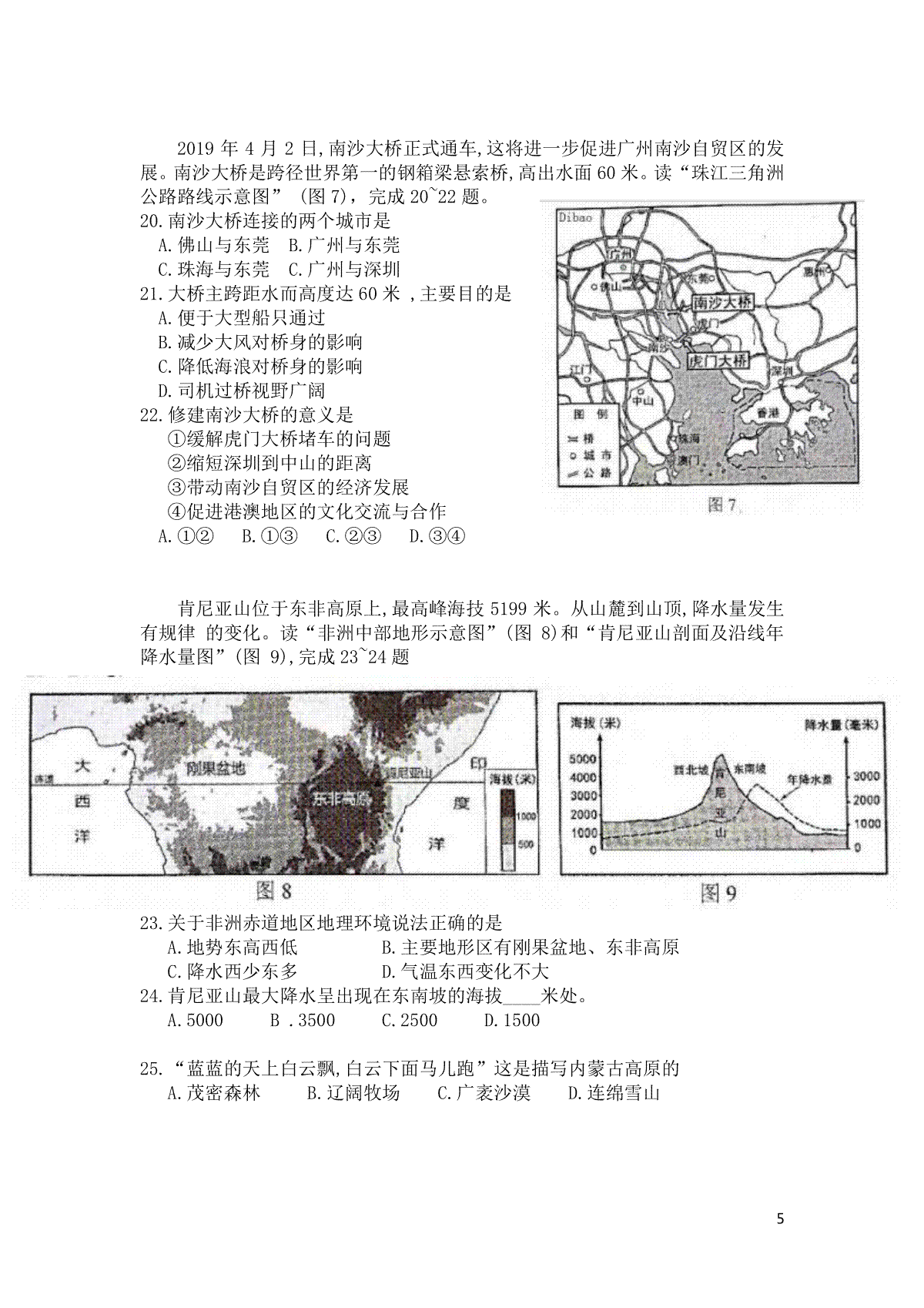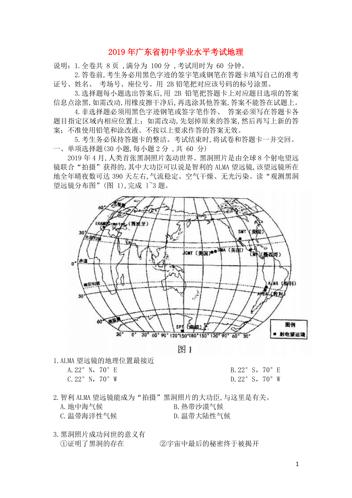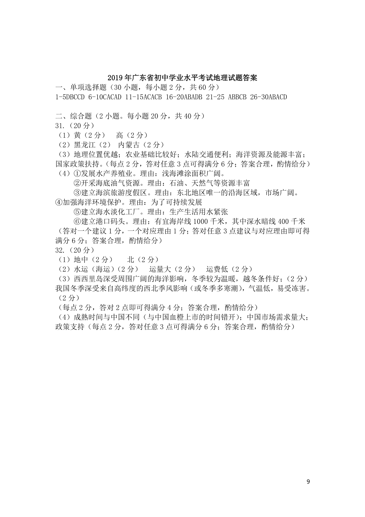 如果你想下载2019年广东省地理中考试题及答案DOC或PDF版,请点击本文末链接!