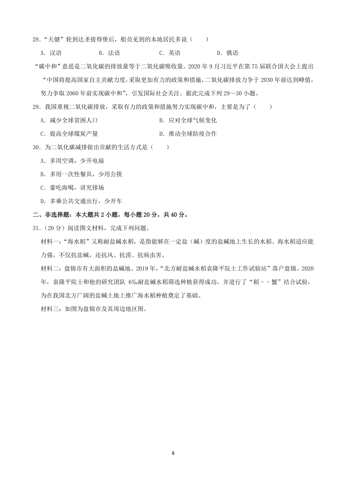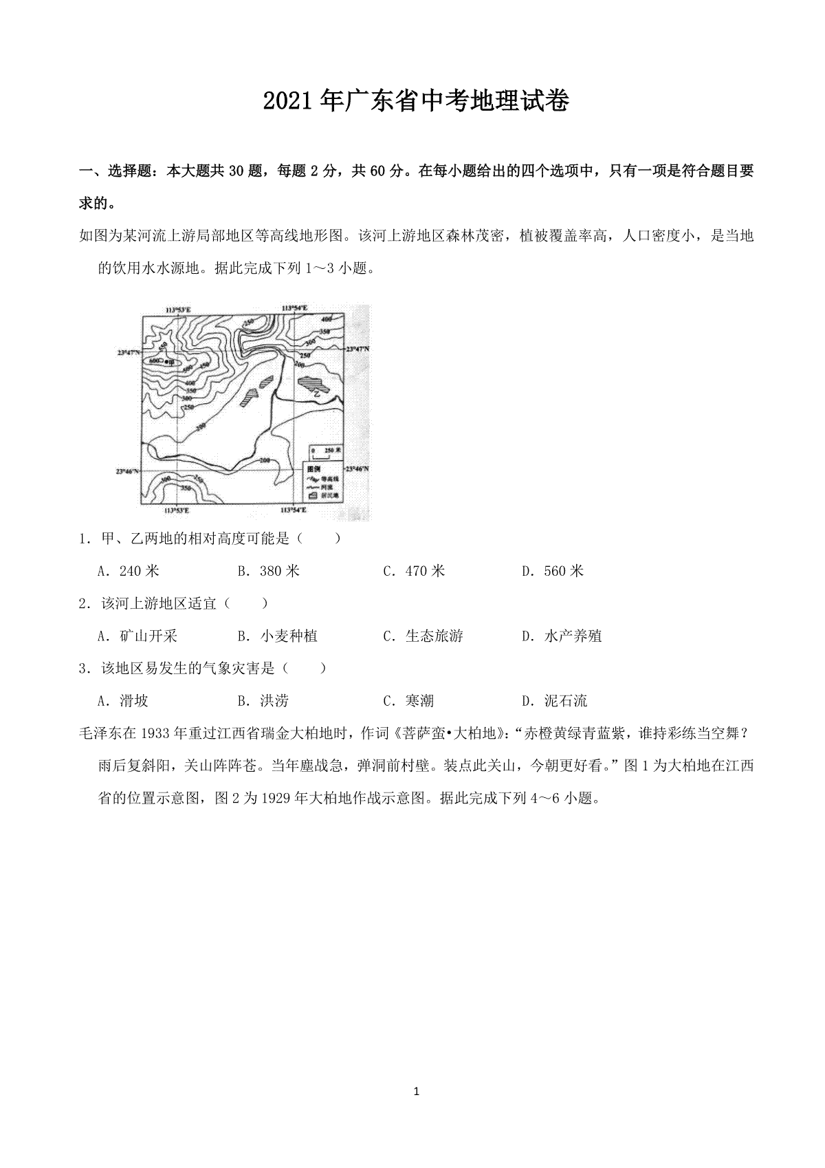 如果你想下载2021年广东省地理中考试题及答案DOC或PDF版,请点击本文末链接!