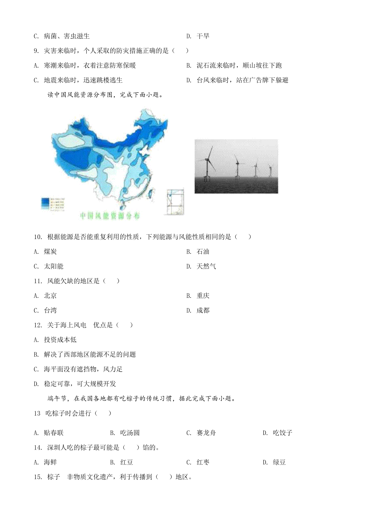 如果你想下载2021年广东省深圳市中考地理真题(原卷版)DOC或PDF版,请点击本文末链接!