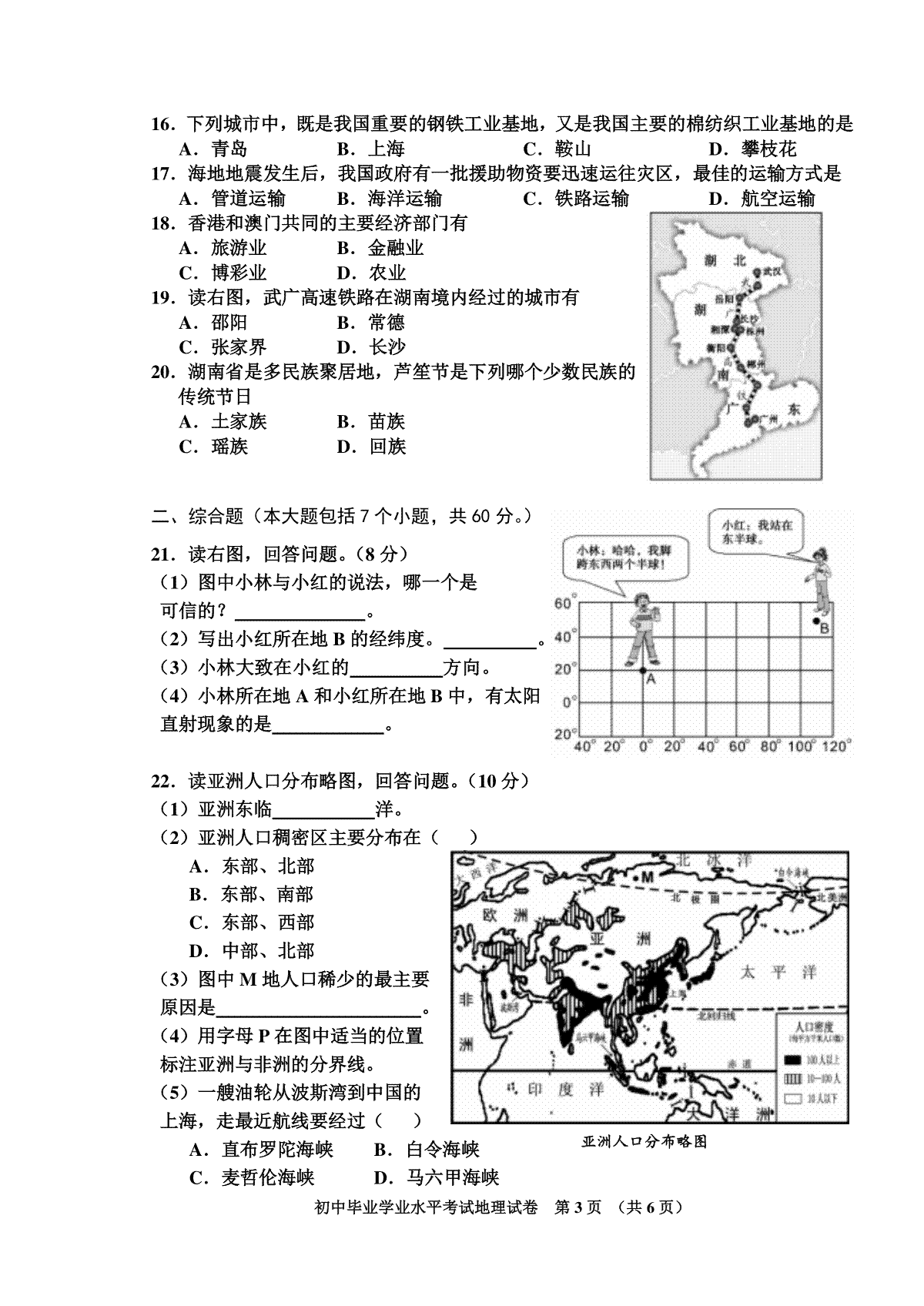 2010年长沙市地理中考真题及答案于近期开考,本次考试对考生对知识的掌握参考价值大,为了方便大家复习掌握错题!小编在下文为大家准备了2010年长沙市地理中考真题及答案试卷及答案解析详情,仅供考生参考。