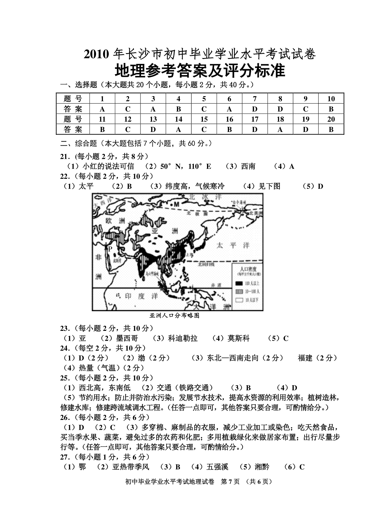 如果你想下载2010年长沙市地理中考真题及答案DOC或PDF版,请点击本文末链接!