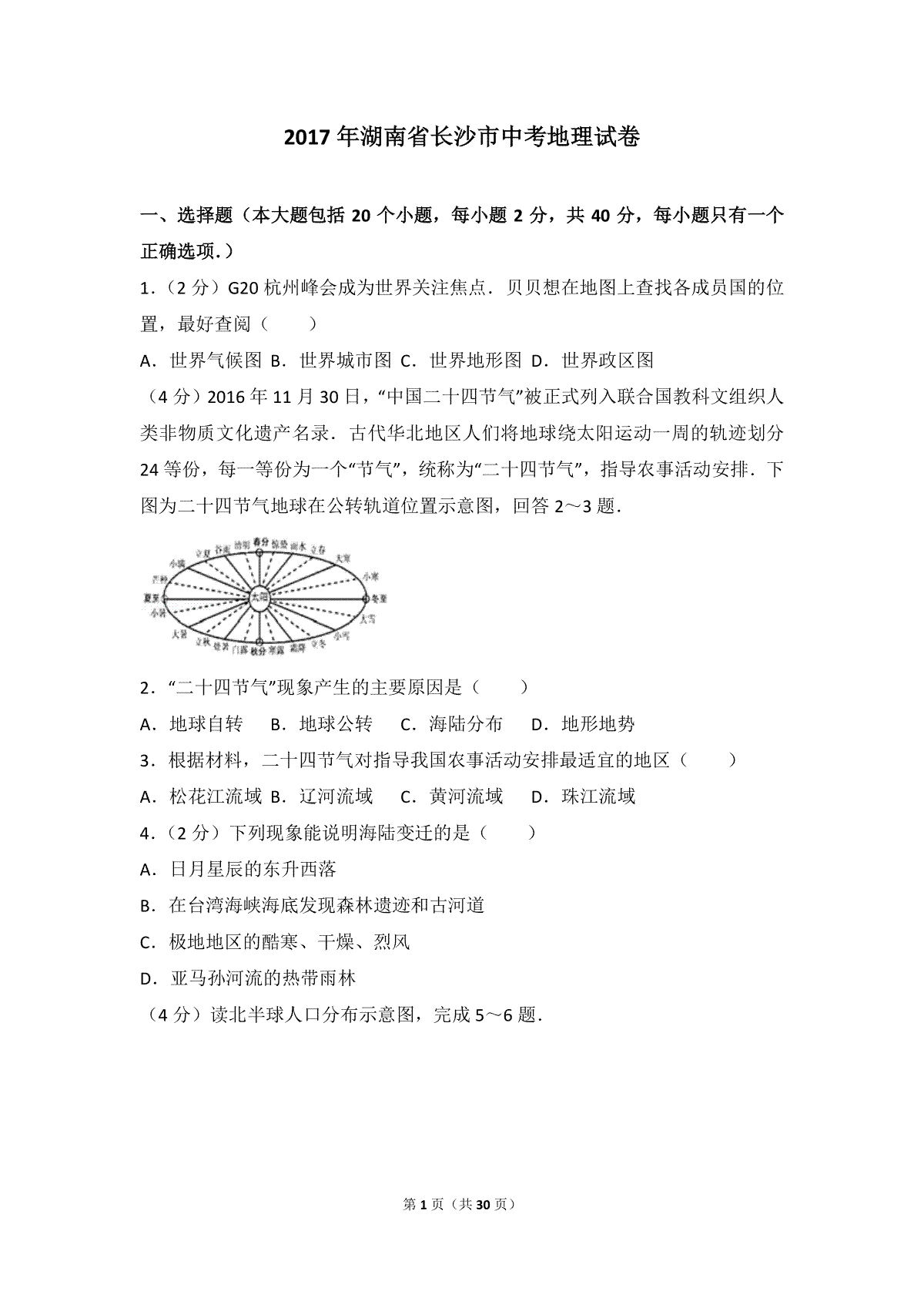 2017年长沙市地理中考真题及答案于近期开考,本次考试对考生对知识的掌握参考价值大,为了方便大家复习掌握错题!小编在下文为大家准备了2017年长沙市地理中考真题及答案试卷及答案解析详情,仅供考生参考。