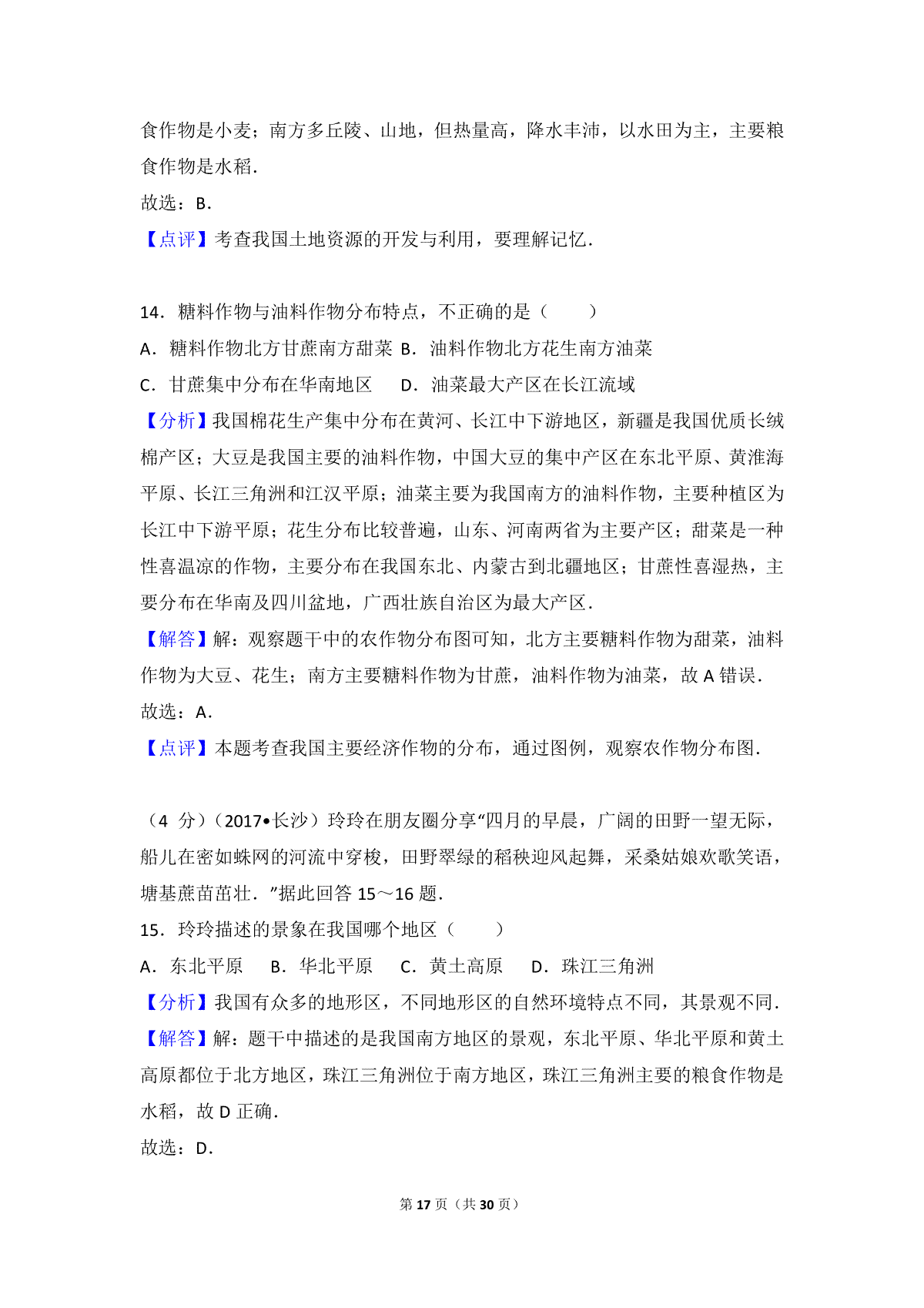 如果你想下载2017年长沙市地理中考真题及答案DOC或PDF版,请点击本文末链接!