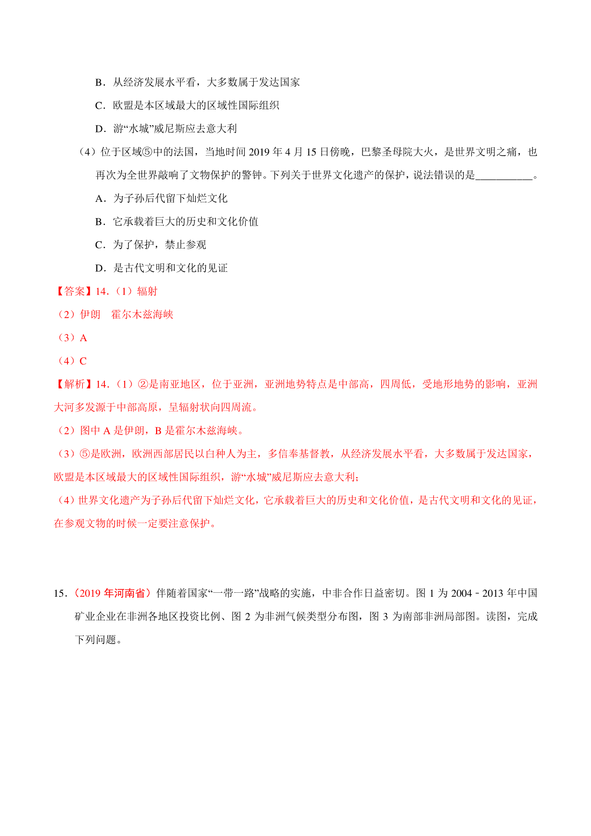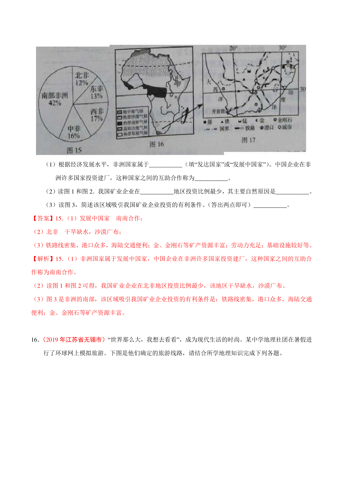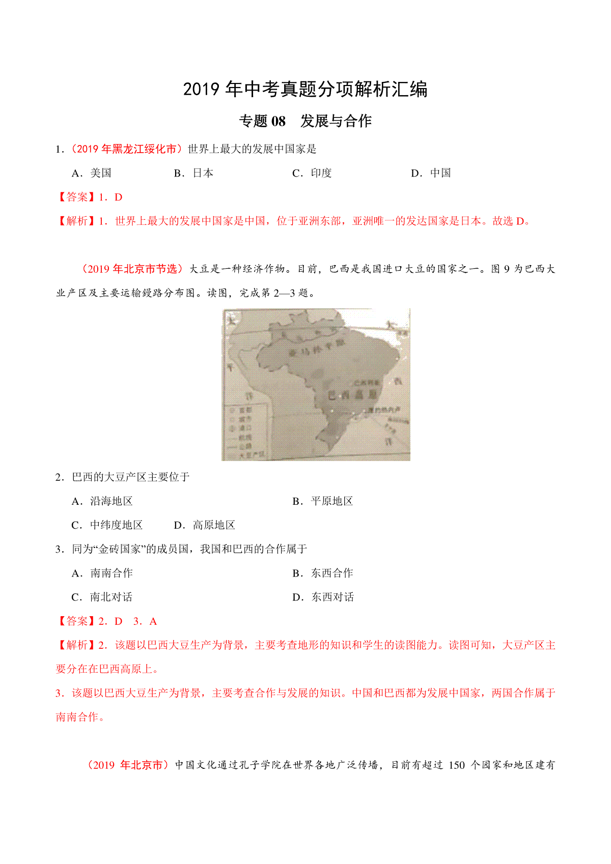 一、专题08 发展与合作(第01期)-2019年中考真题地理试题分项汇编(解析版)
