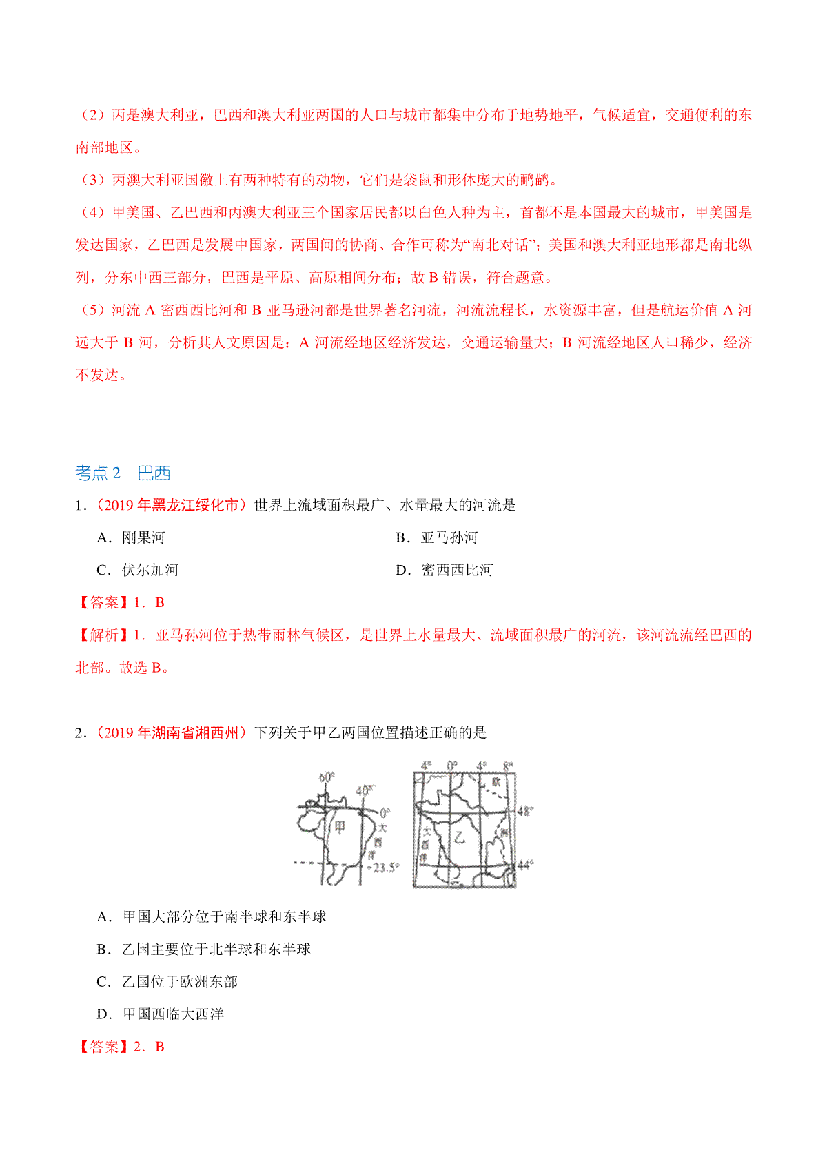 1.专题12 西半球的国家(第01期)-2019年中考真题地理试题分项汇编(解析版)