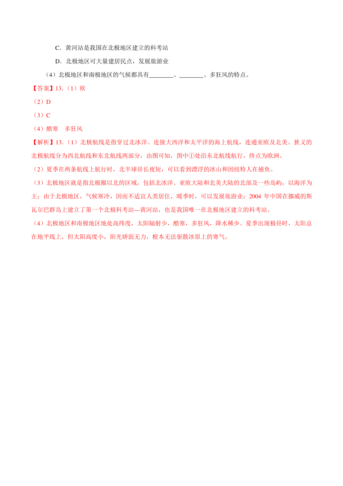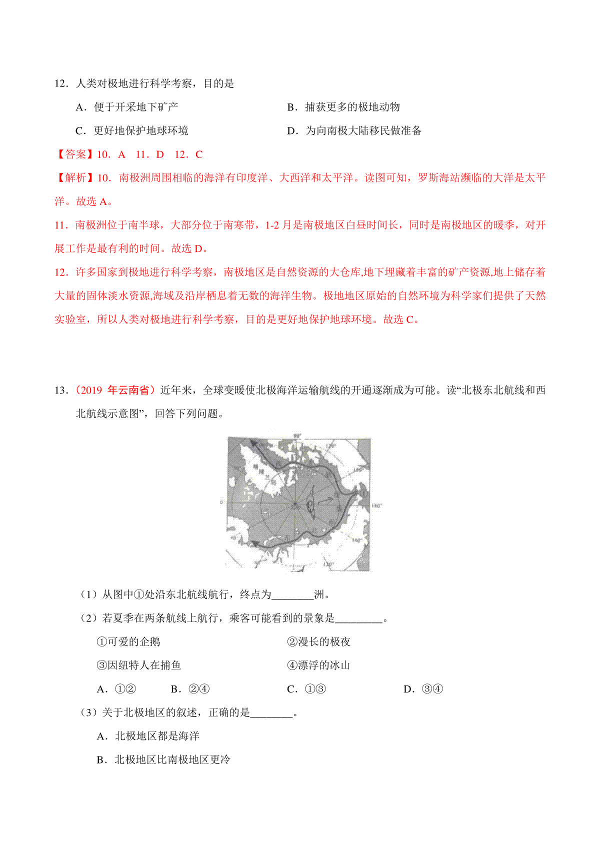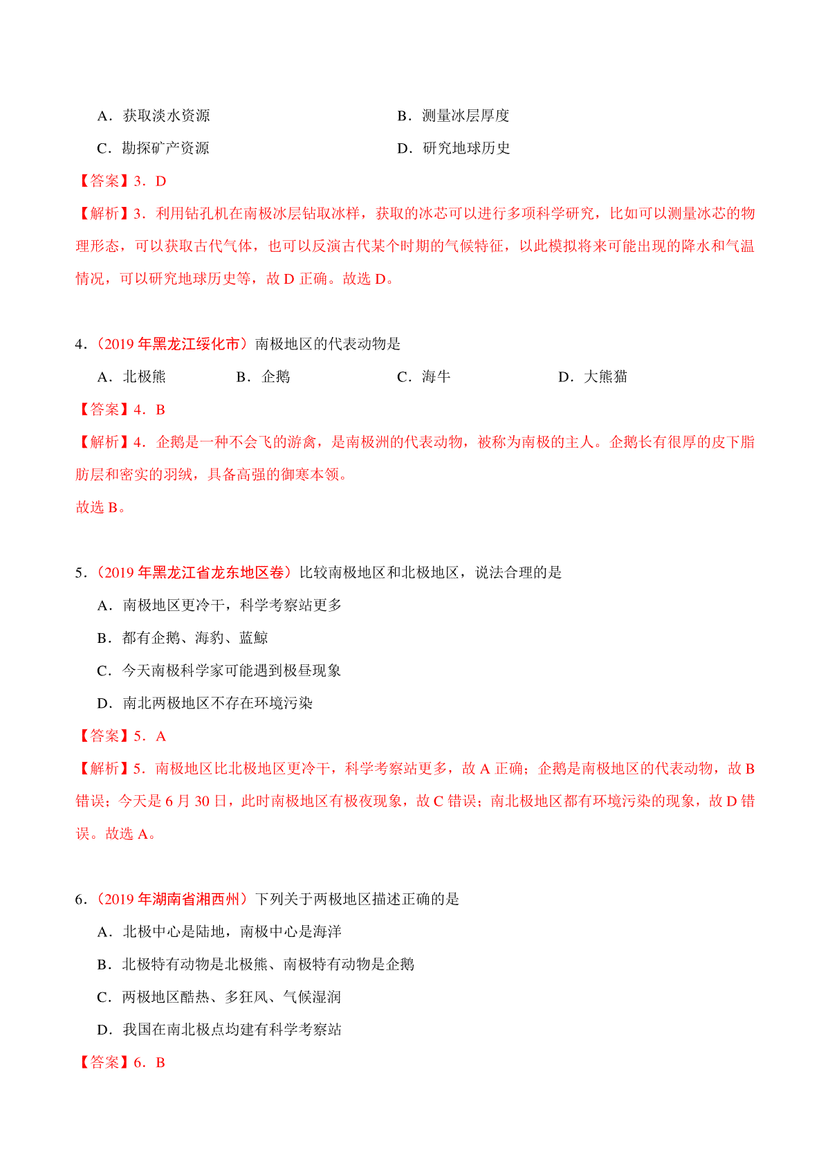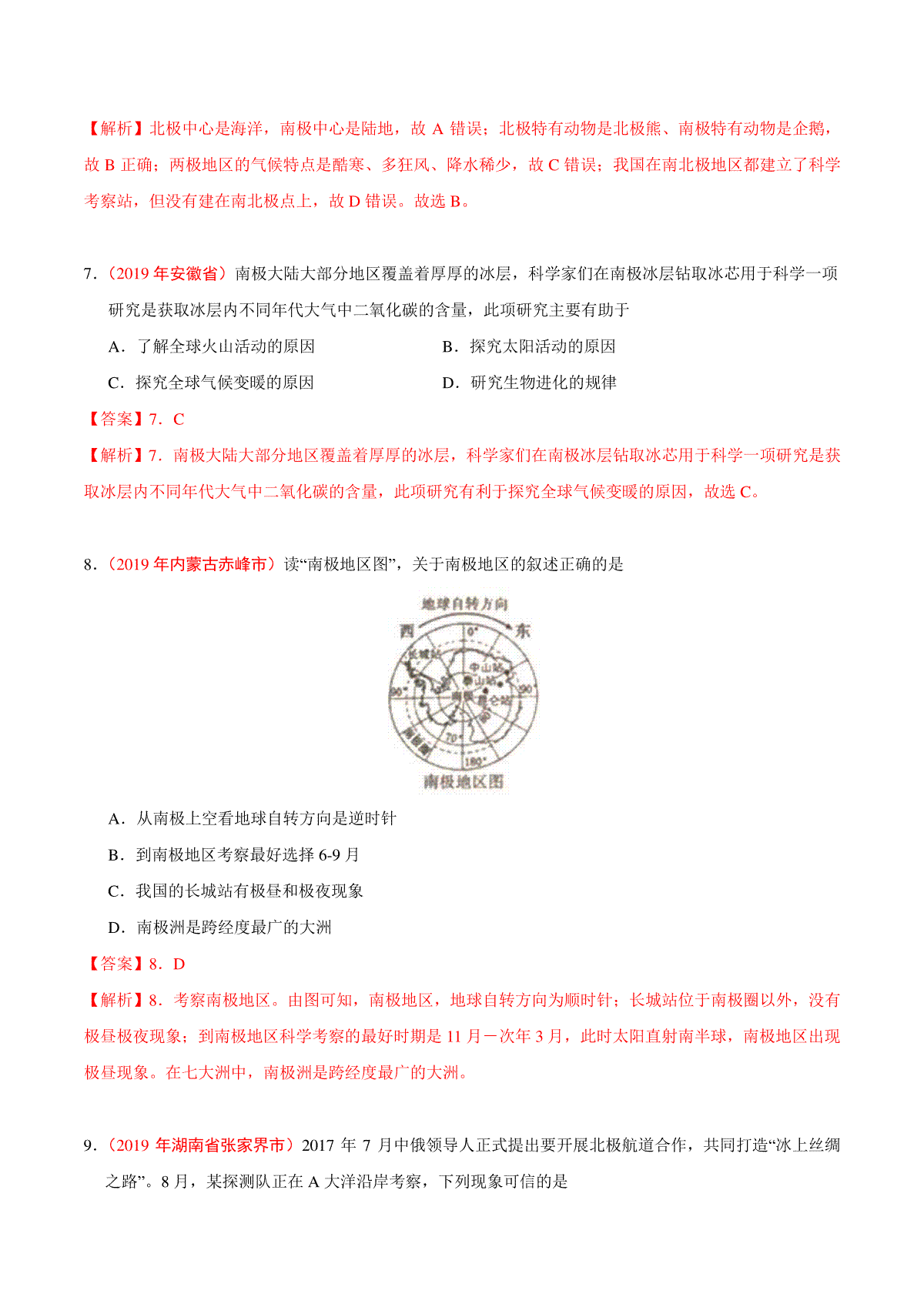 1.专题13 极地地区(第01期)-2019年中考真题地理试题分项汇编(解析版)