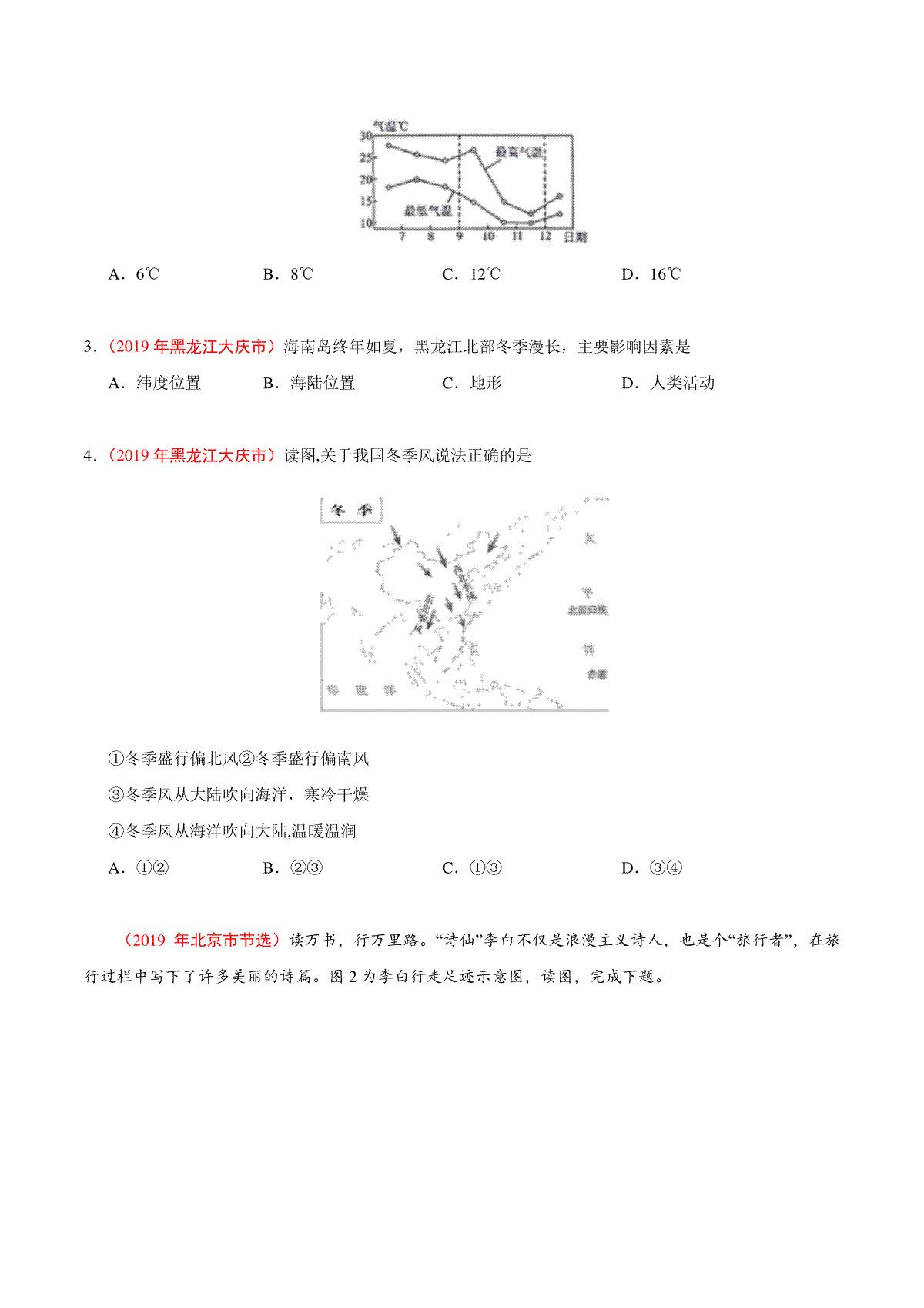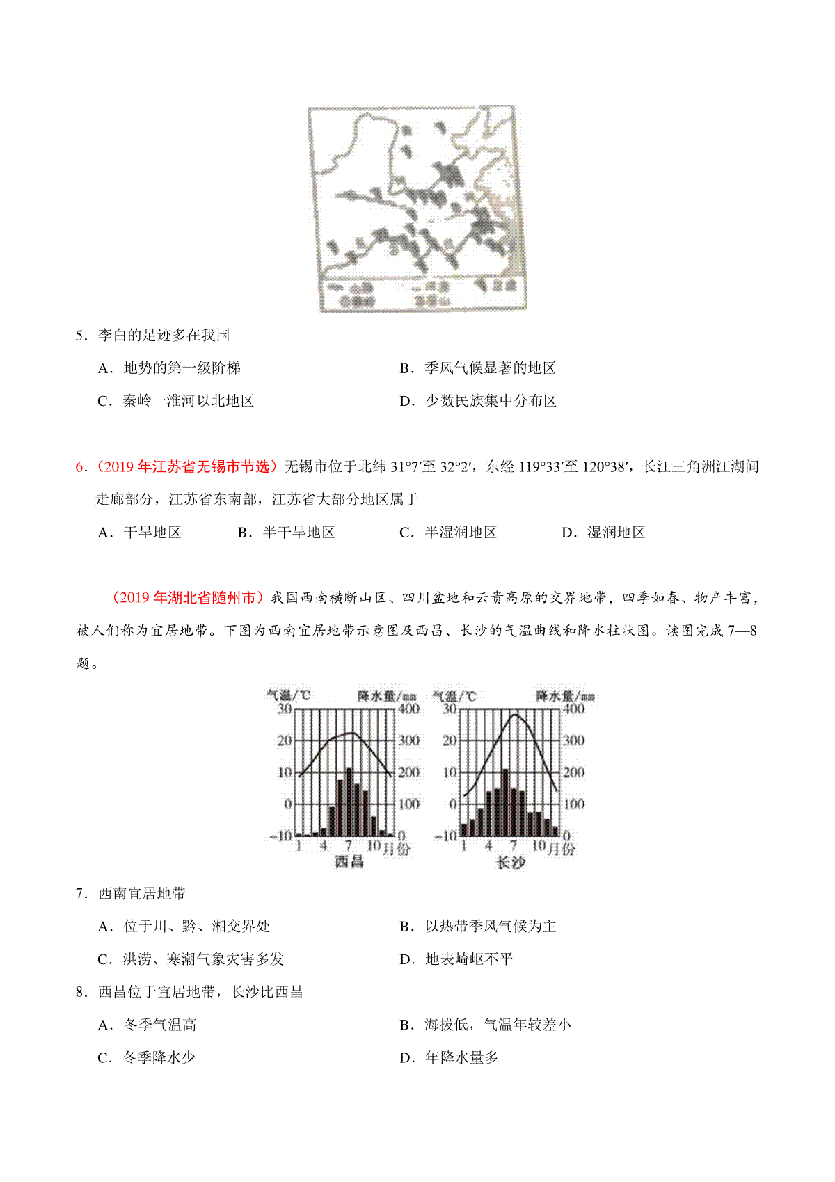 一、专题15 中国的自然环境(第01期)-2019年中考真题地理试题分项汇编(原卷版)