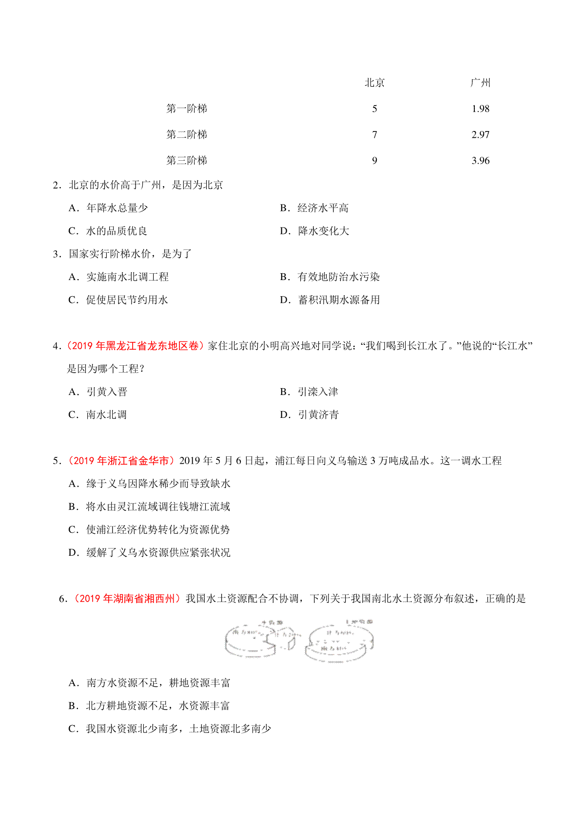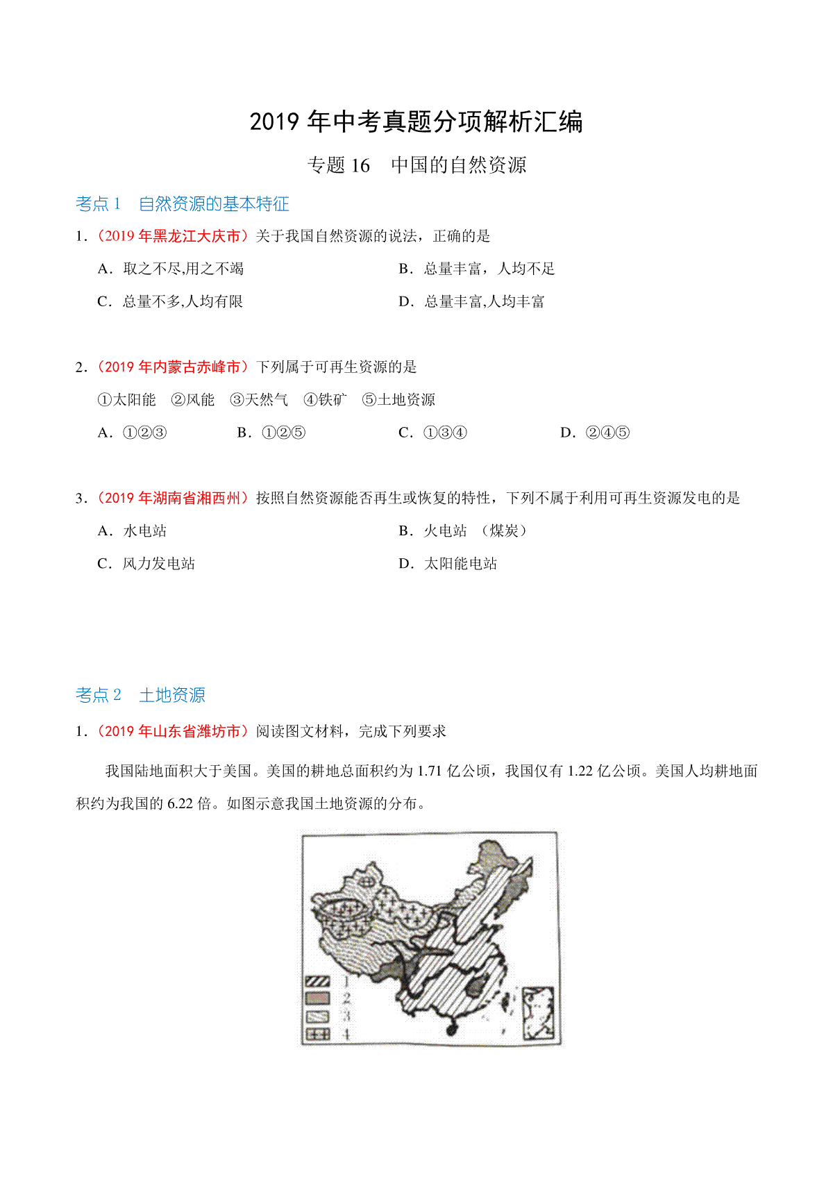 1.专题16 中国的自然资源(第01期)-2019年中考真题地理试题分项汇编(原卷版)
