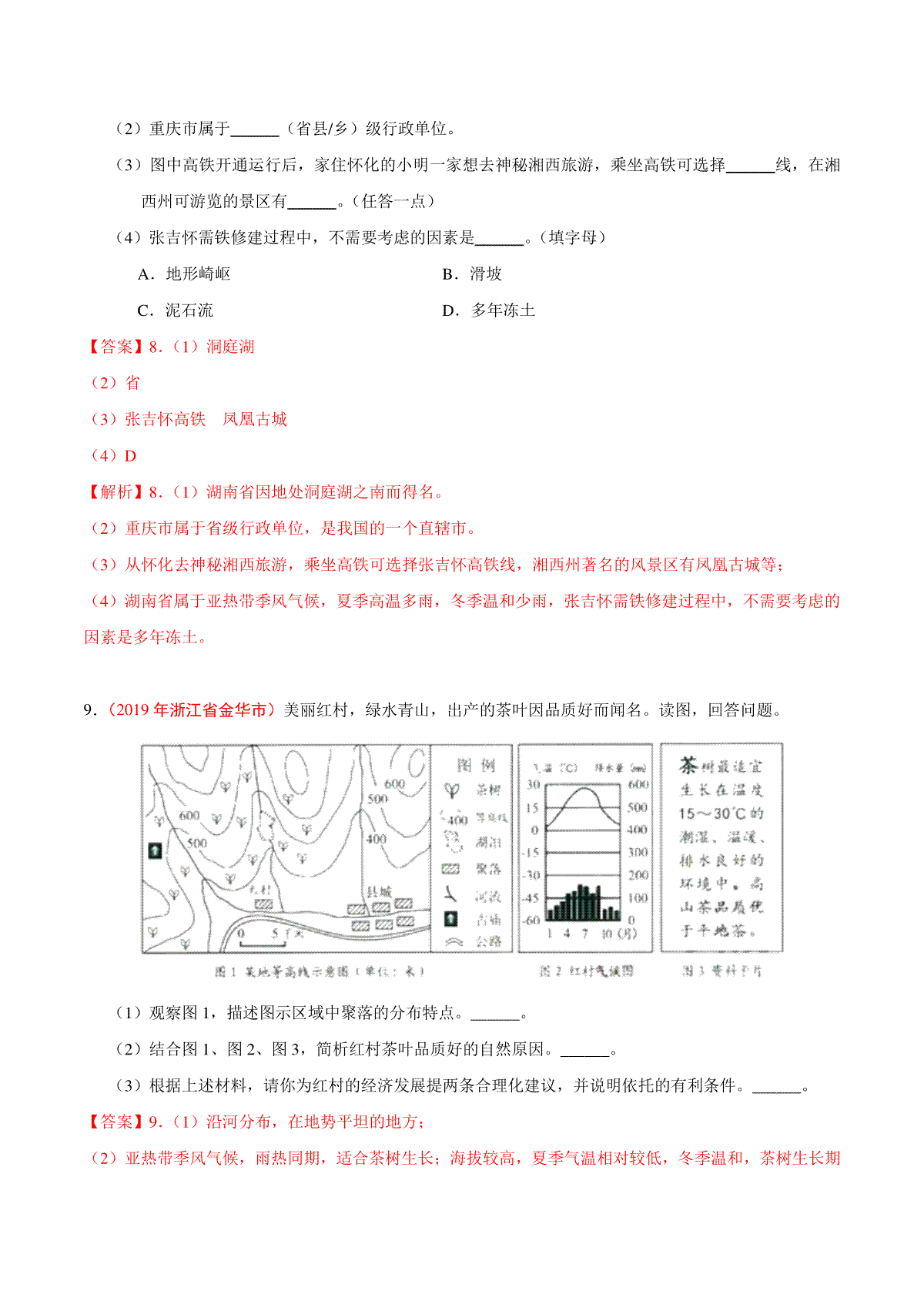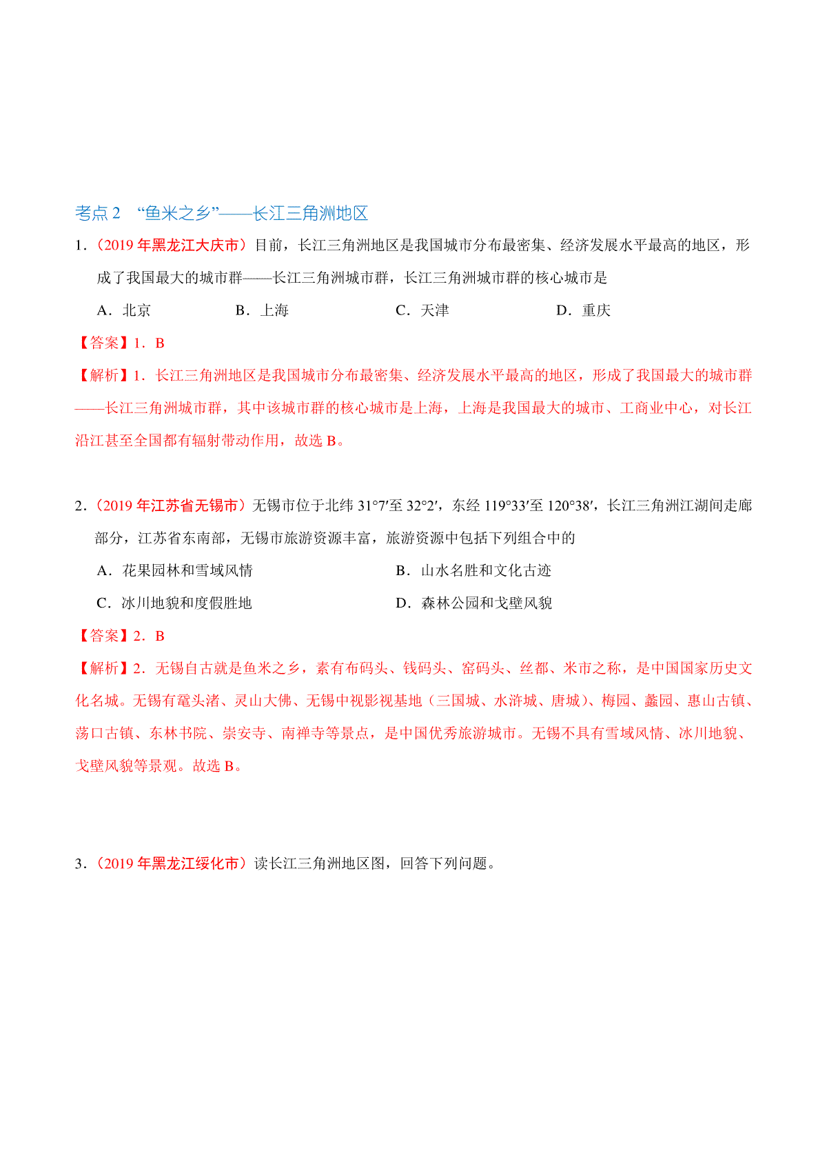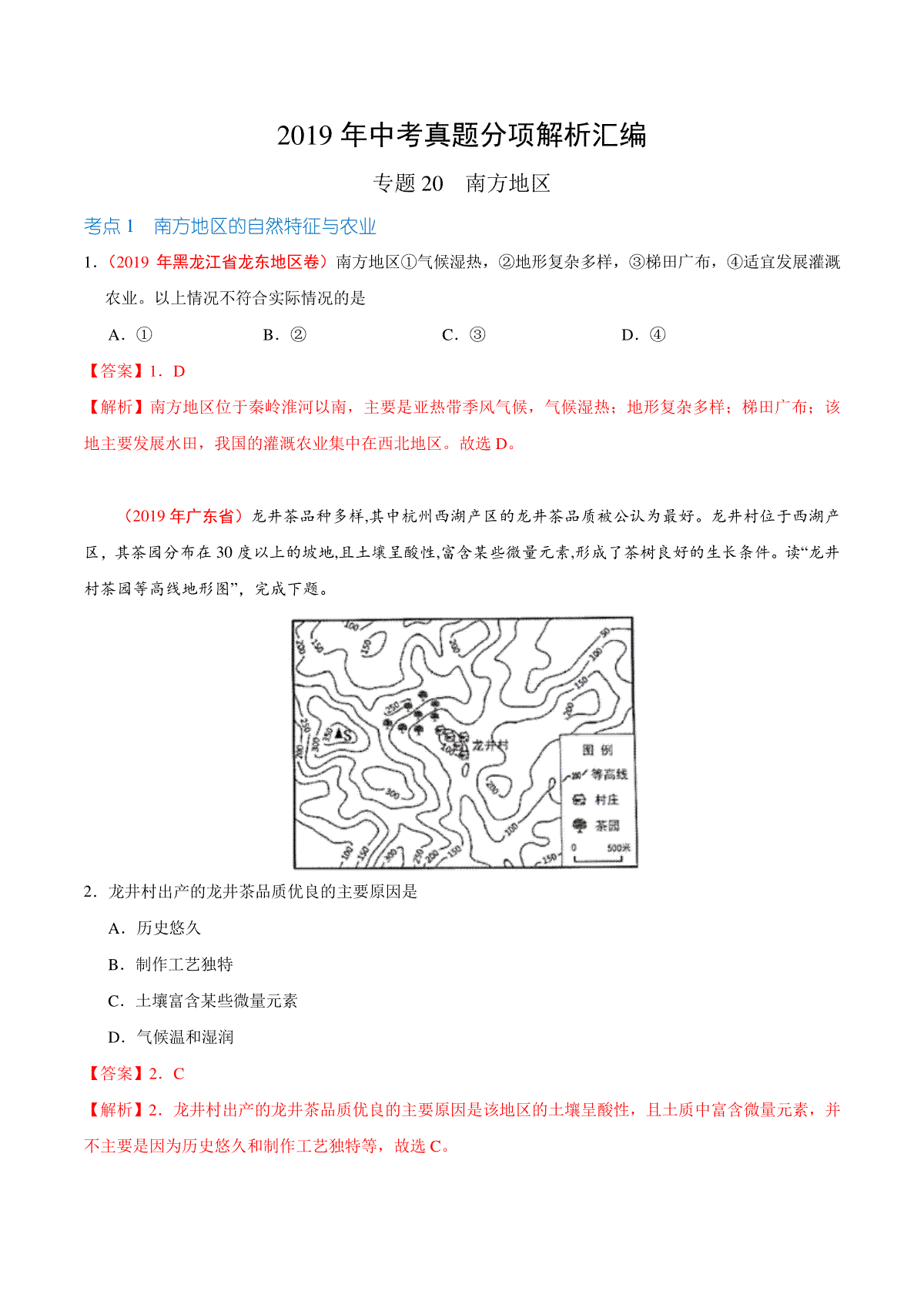 一、专题20 南方地区(第01期)-2019年中考真题地理试题分项汇编(解析版)