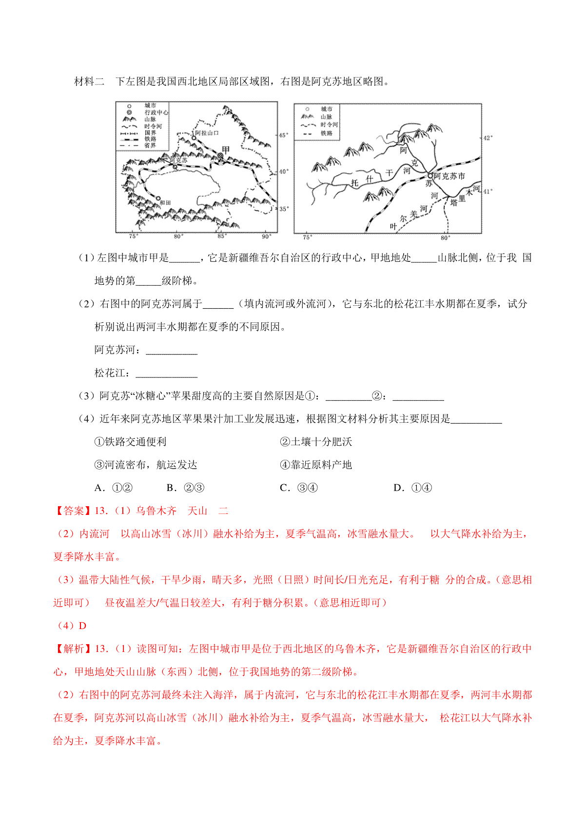 一、专题21 西北地区(第01期)-2019年中考真题地理试题分项汇编(解析版)