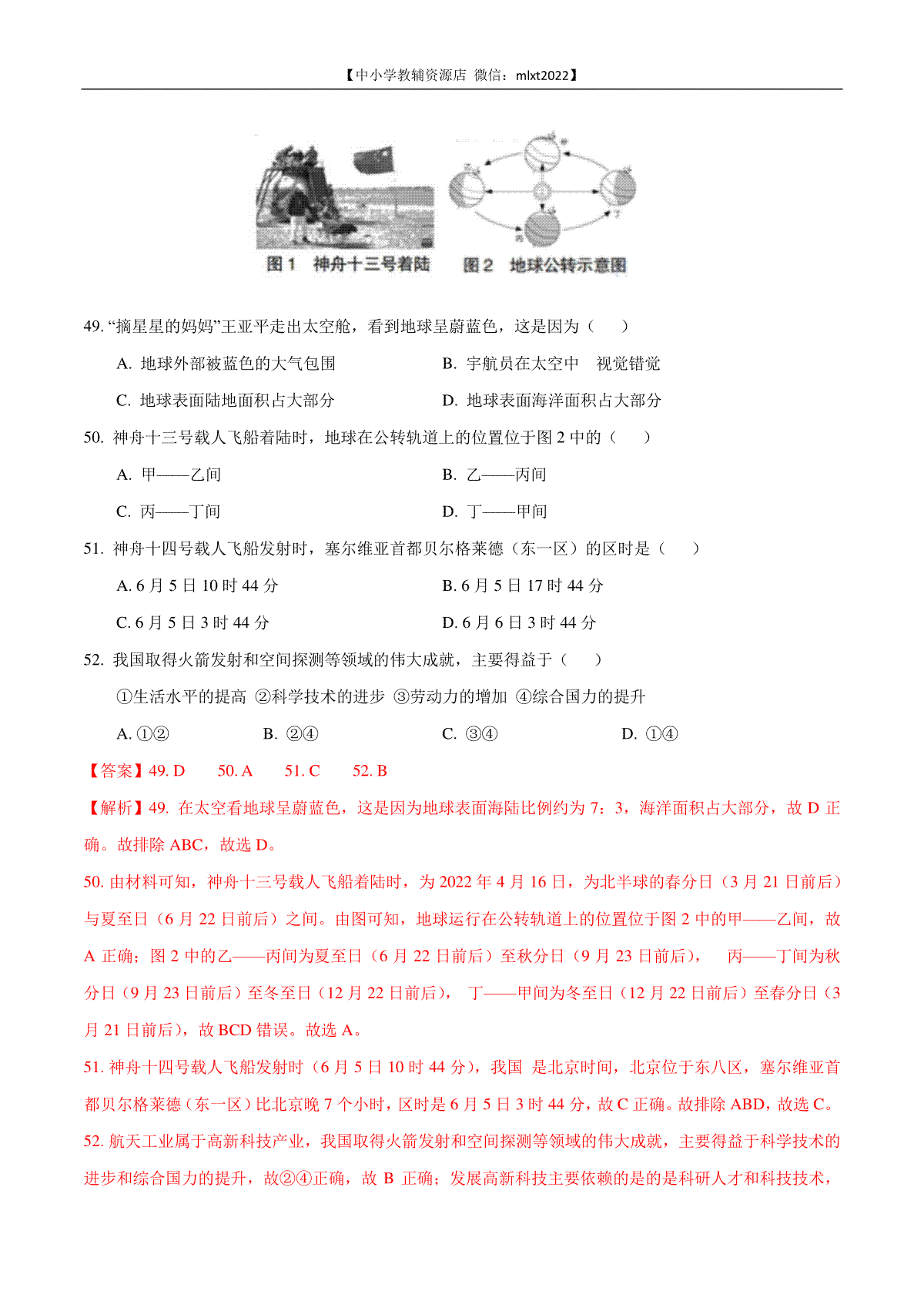 如果你想下载第1期专题01 地球与地图2022年中考地理真题分项汇编(全国通用)(解析版)DOC或PDF版,请点击本文末链接!