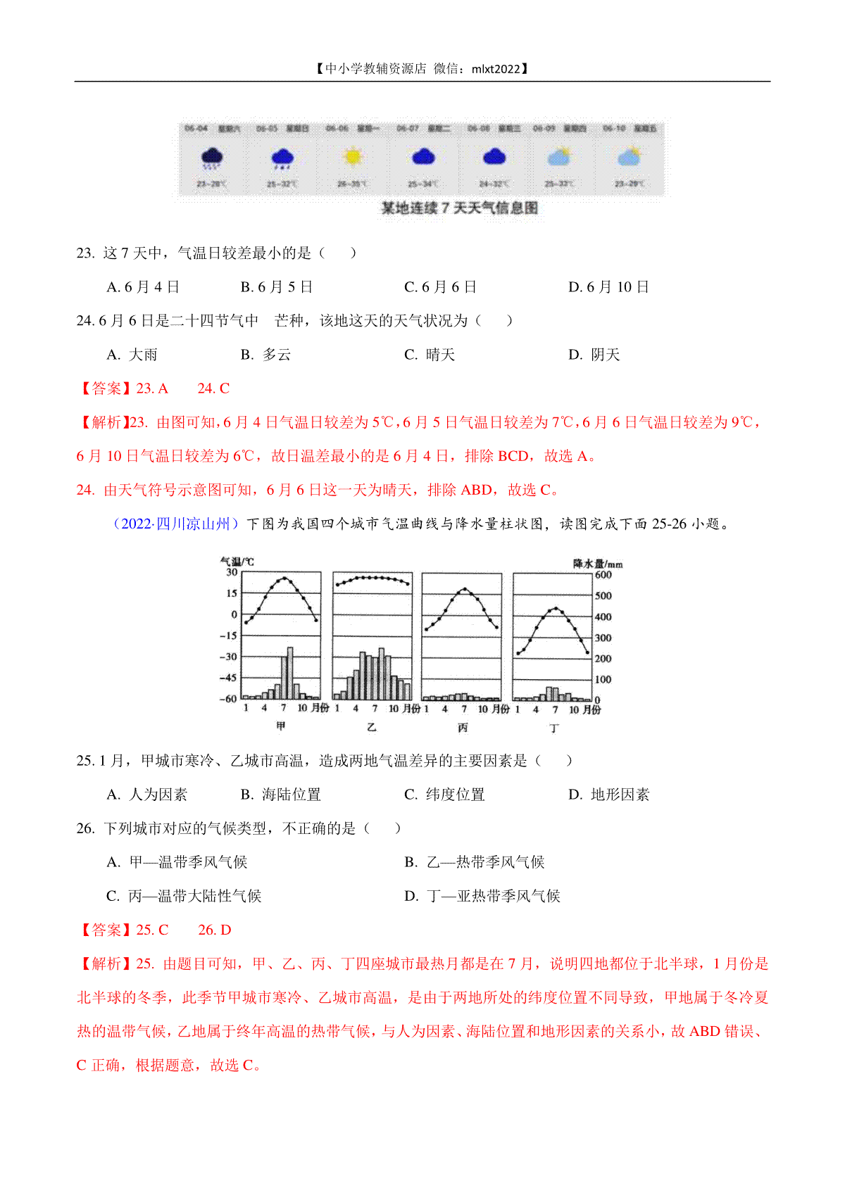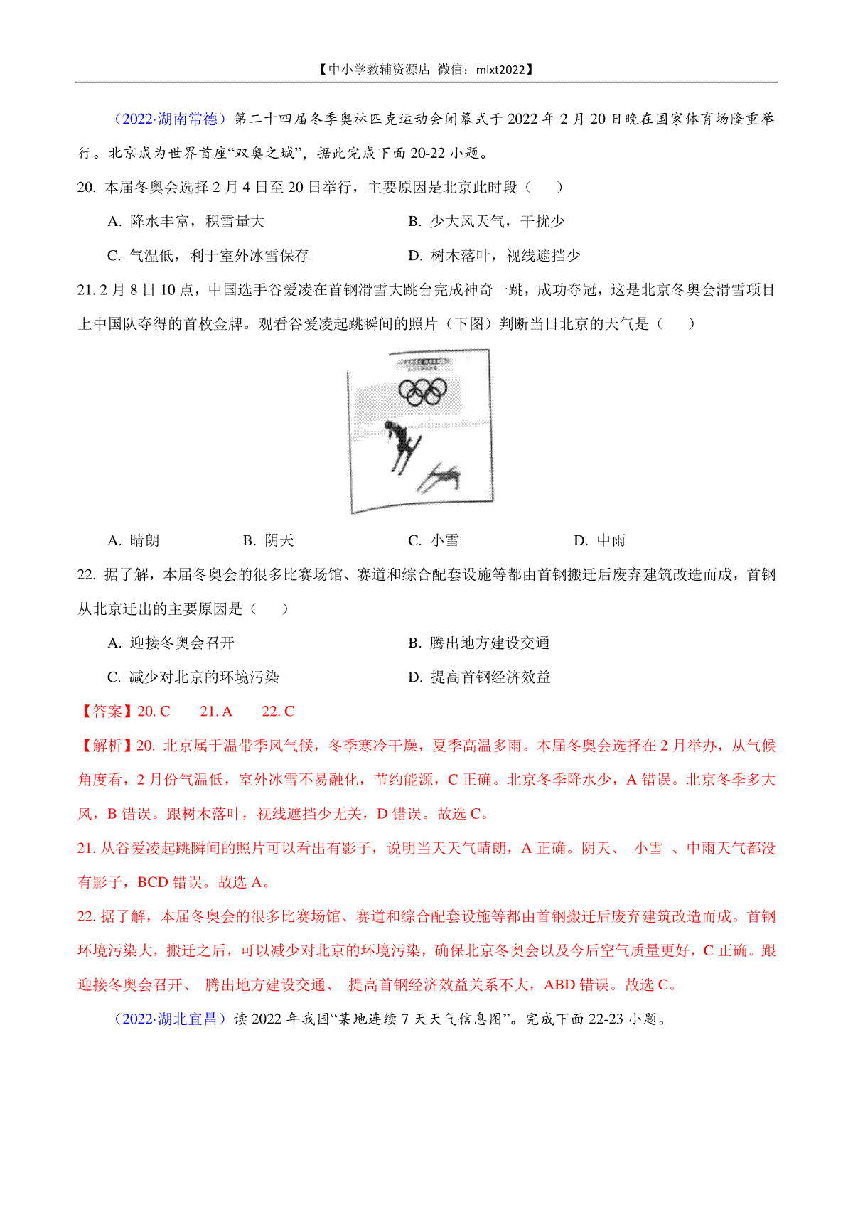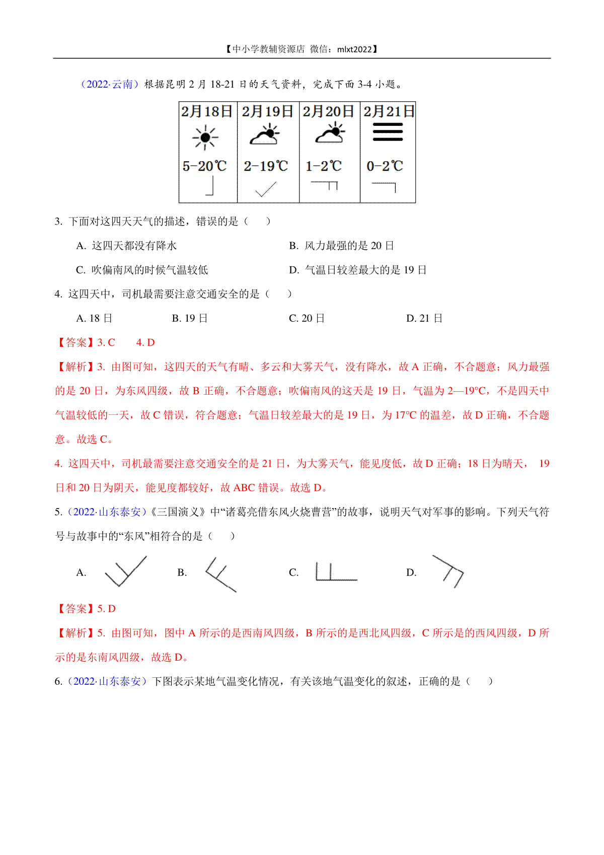 1.第1期专题03 天气与气候2022年中考地理真题分项汇编(全国通用)(解析版)