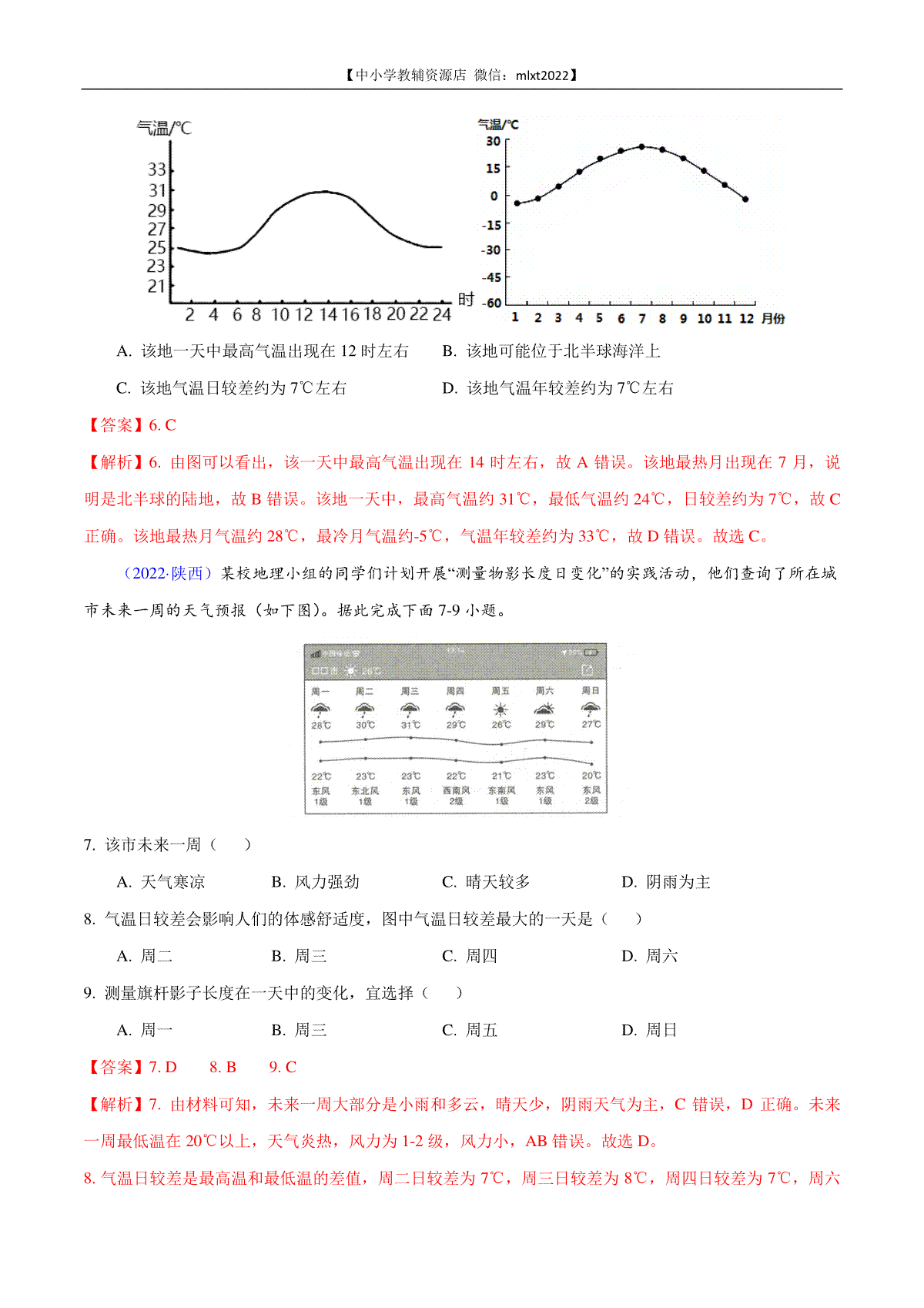 如果你想下载第1期专题03 天气与气候2022年中考地理真题分项汇编(全国通用)(解析版)DOC或PDF版,请点击本文末链接!