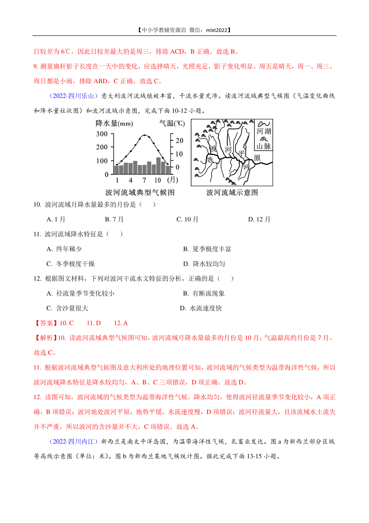 一、第1期专题03 天气与气候2022年中考地理真题分项汇编(全国通用)(解析版)