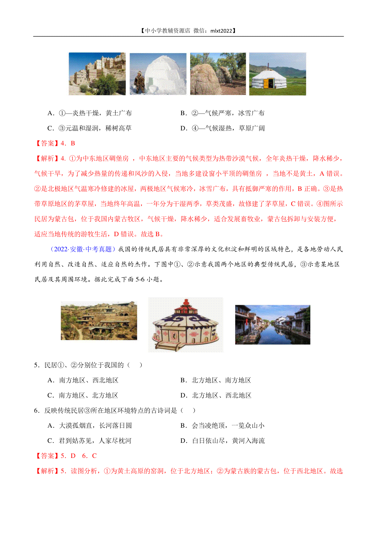 一、第1期专题04 居民与聚落2022年中考地理真题分项汇编(全国通用)(解析版)