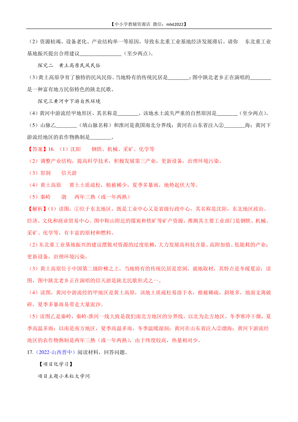3.第1期专题04 居民与聚落2022年中考地理真题分项汇编(全国通用)(解析版)