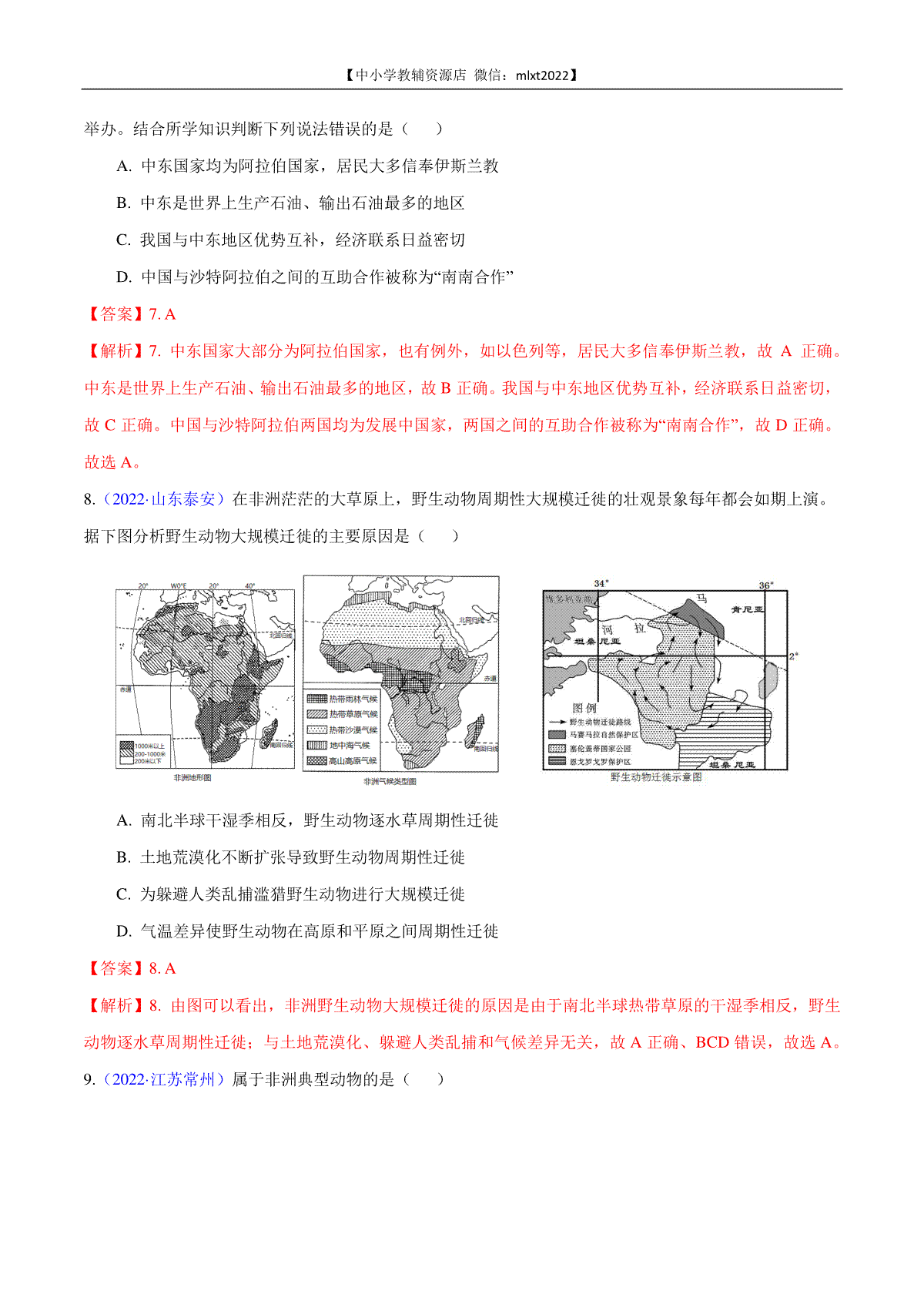 1.第1期专题07 东半球其他的地区和国家2022年中考地理真题分项汇编(全国通用)(解析版)
