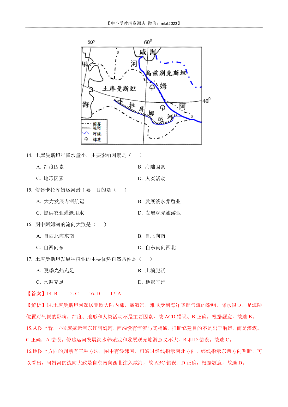 如果你想下载第1期专题07 东半球其他的地区和国家2022年中考地理真题分项汇编(全国通用)(解析版)DOC或PDF版,请点击本文末链接!