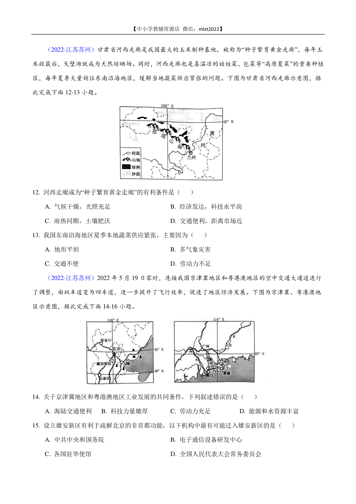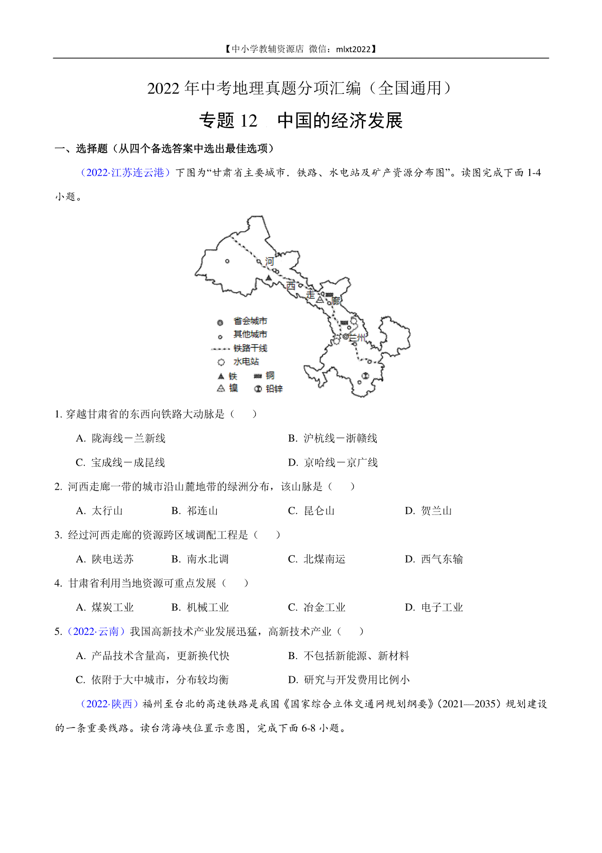 如果你想下载第1期专题12 中国的经济发展2022年中考地理真题分项汇编(全国通用)(原卷版)DOC或PDF版,请点击本文末链接!