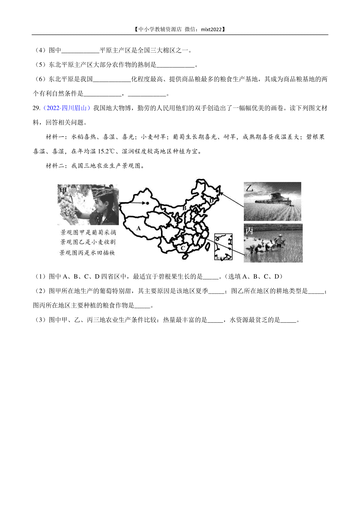 3.第1期专题11 中国的自然资源2022年中考地理真题分项汇编(全国通用)(原卷版)