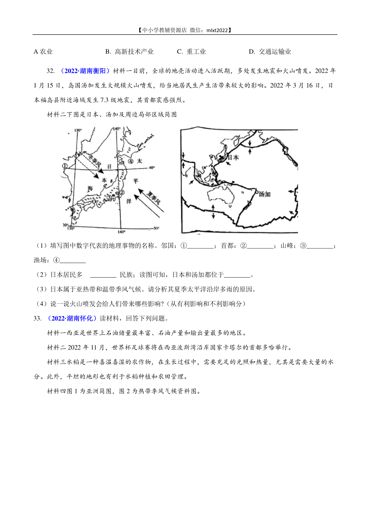 如果你想下载第2期专题06 亚洲、我们邻近的地区和国家2022年中考地理真题分项汇编(全国通用)(原卷版)DOC或PDF版,请点击本文末链接!