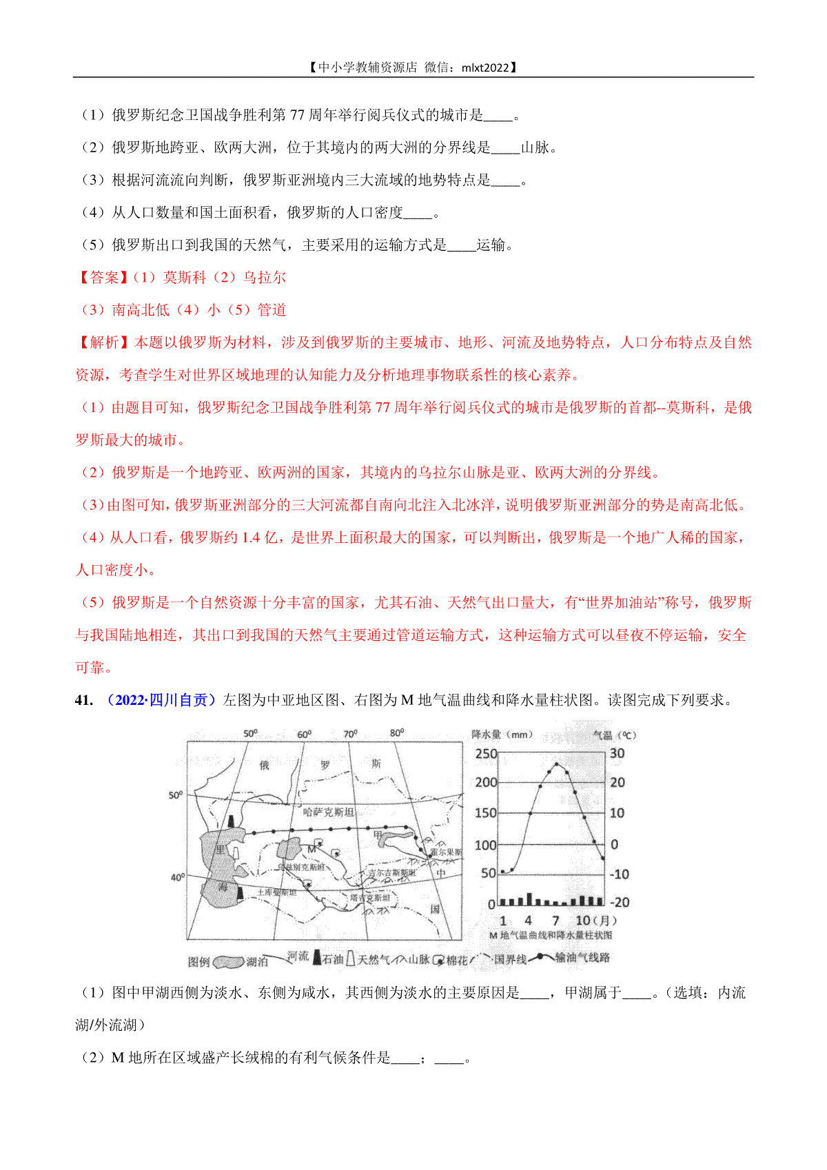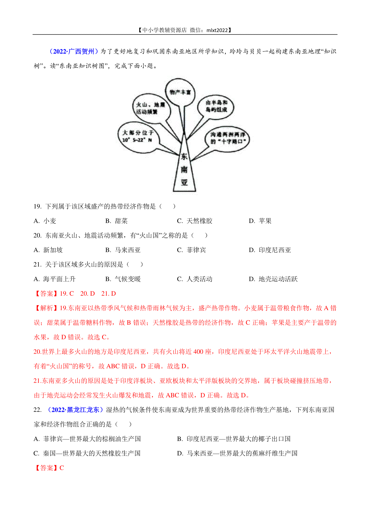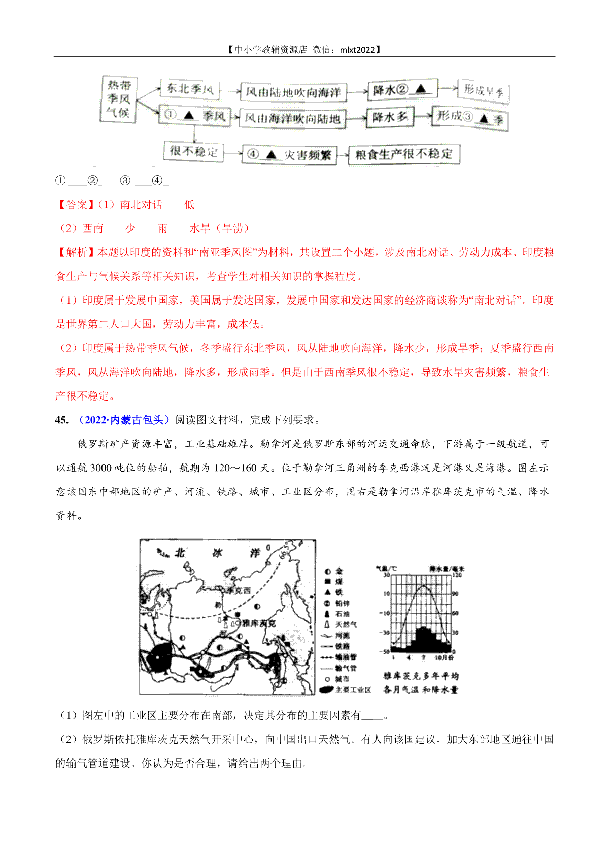 一、第2期专题06 亚洲、我们邻近的地区和国家2022年中考地理真题分项汇编(全国通用)(解析版)