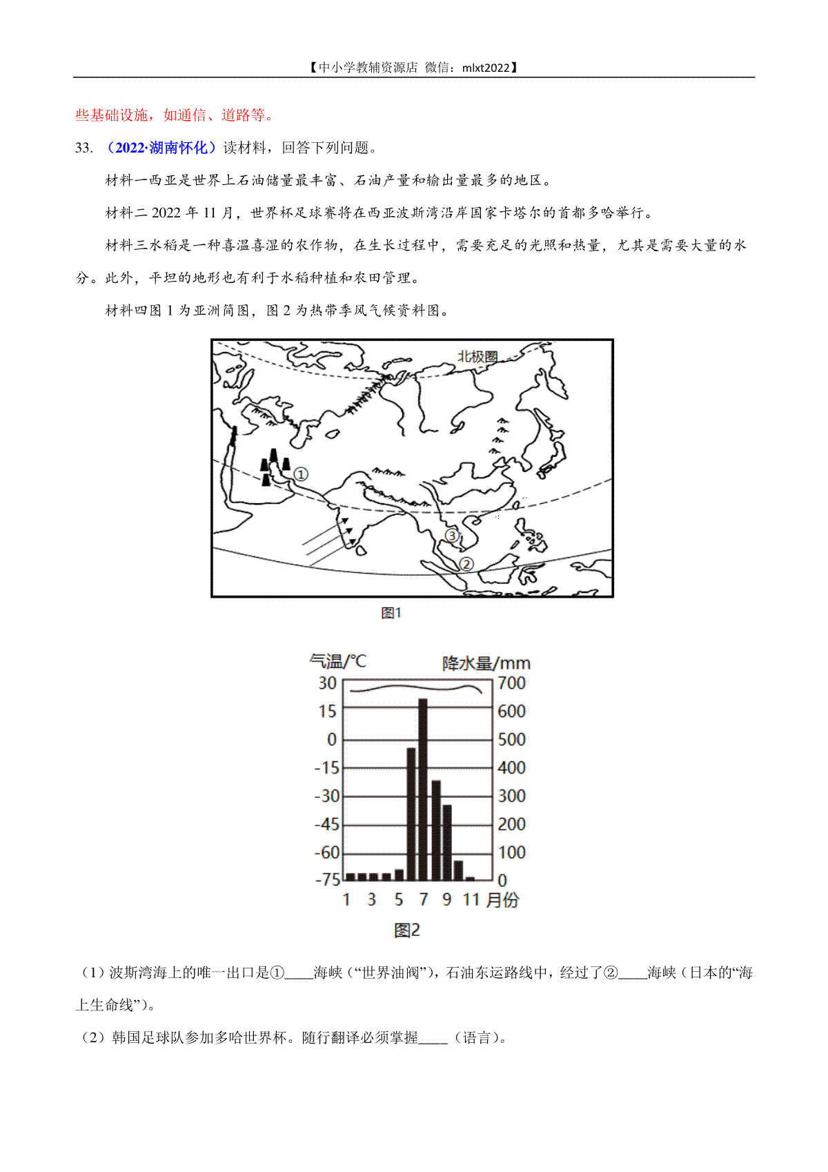 1.第1期专题06 亚洲、我们邻近的地区和国家2022年中考地理真题分项汇编(全国通用)(解析版)