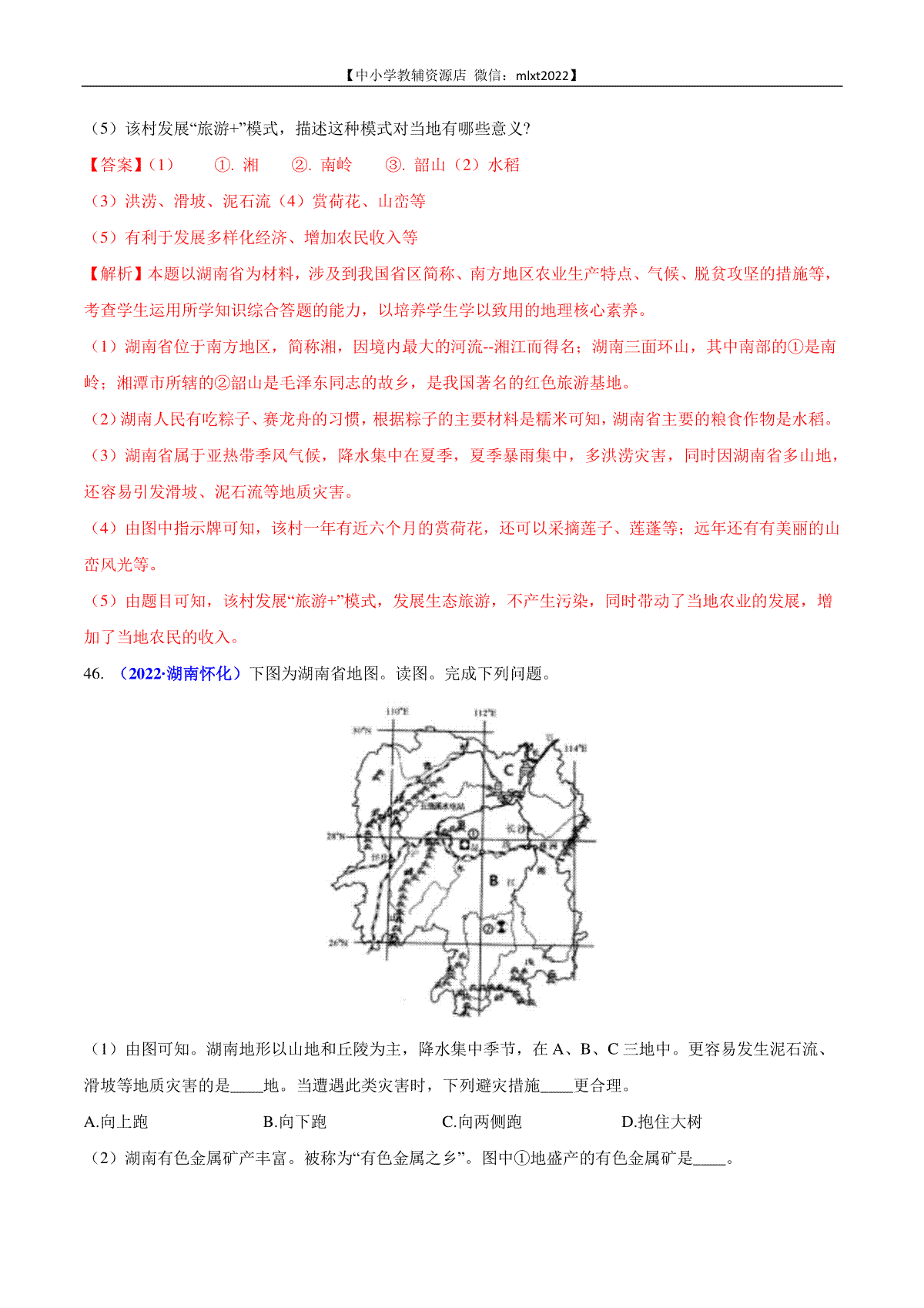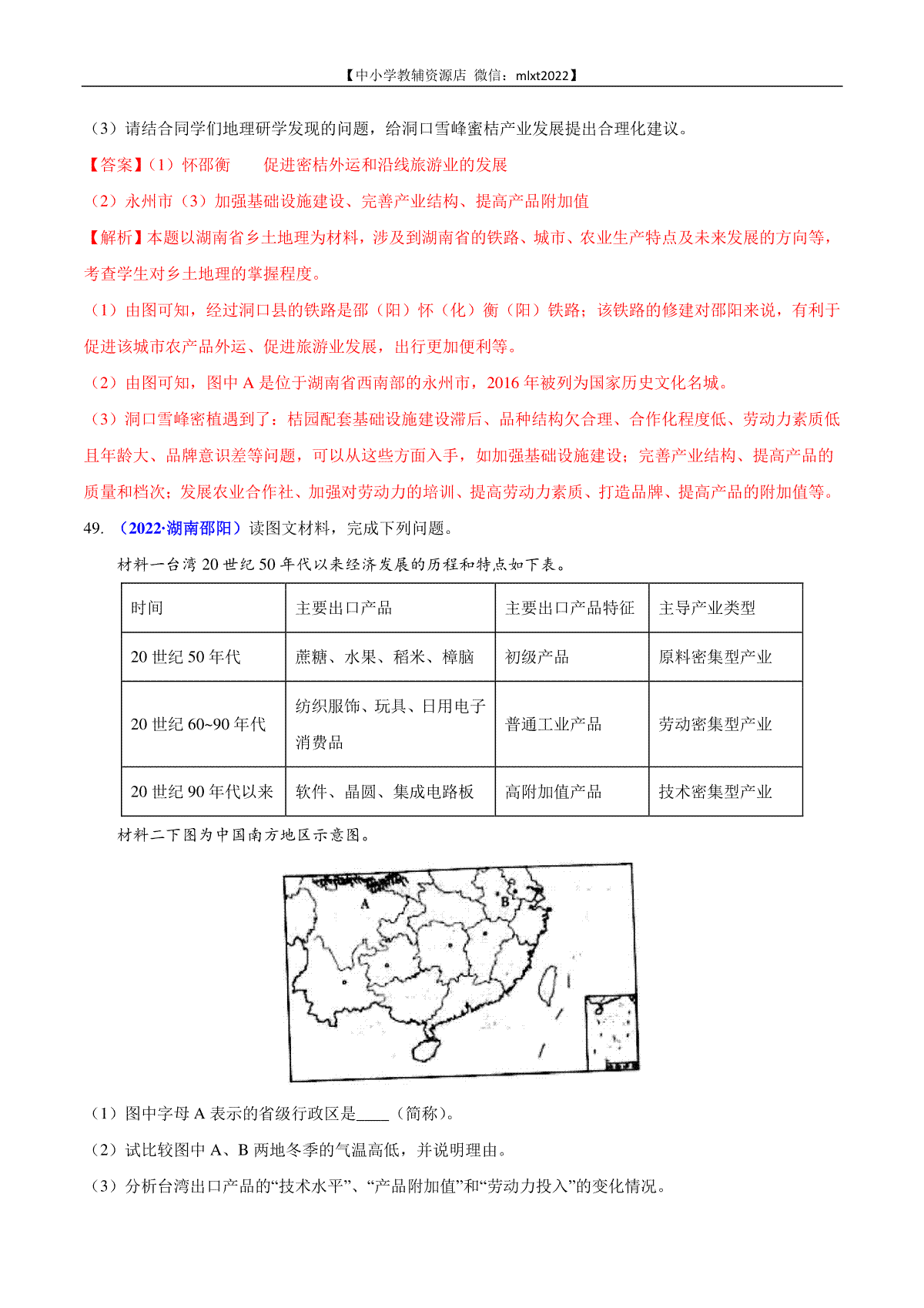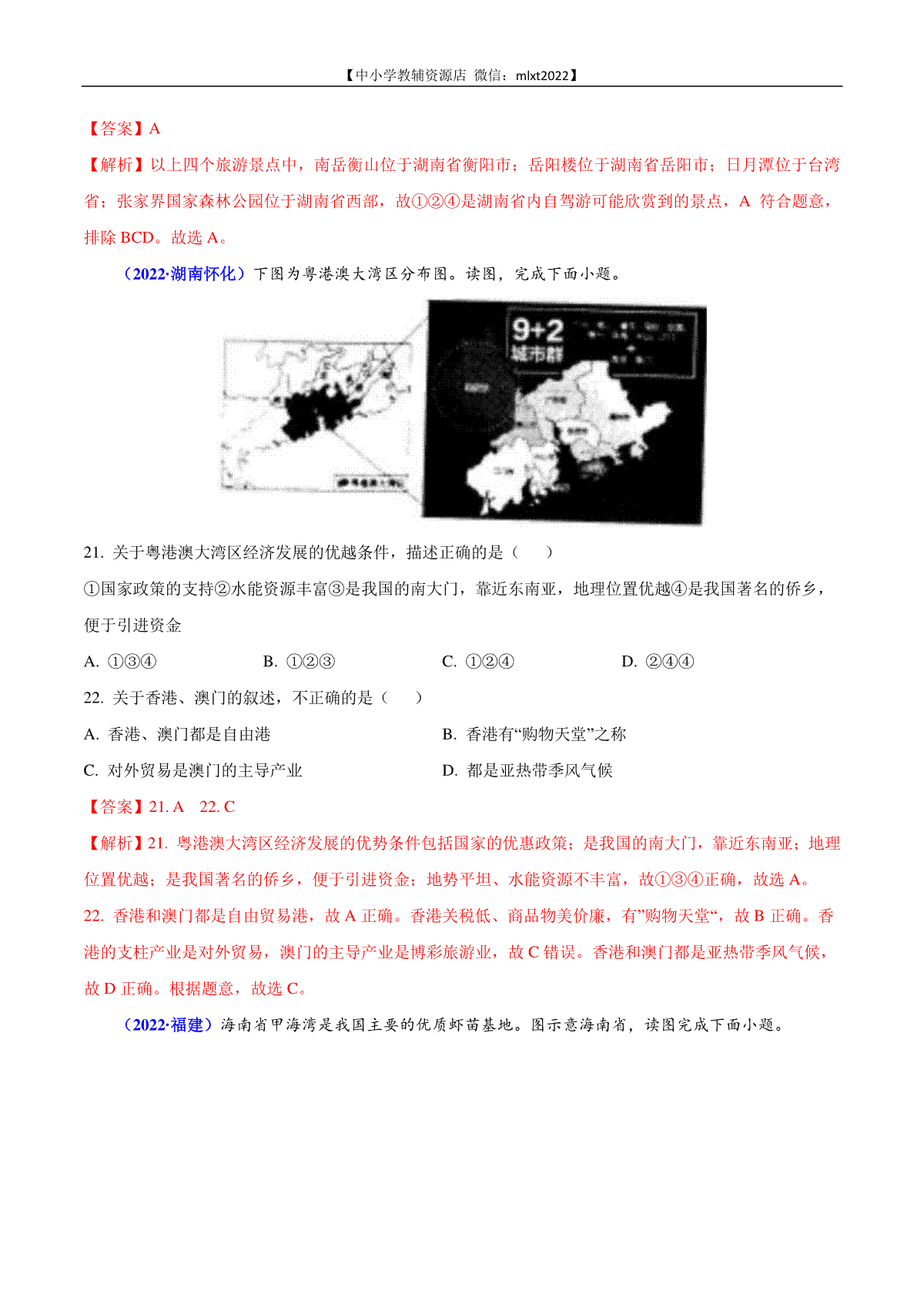 一、第2期专题15 南方地区2022年中考地理真题分项汇编(全国通用)(解析版)