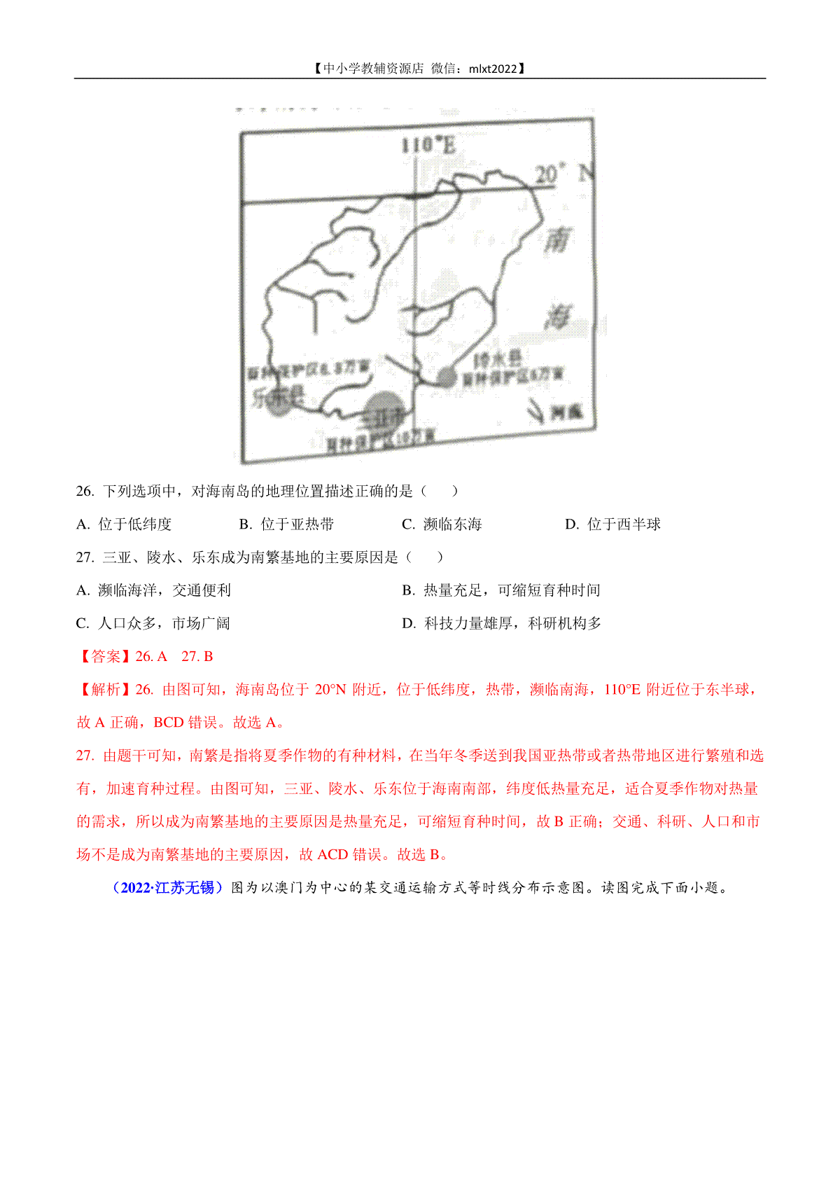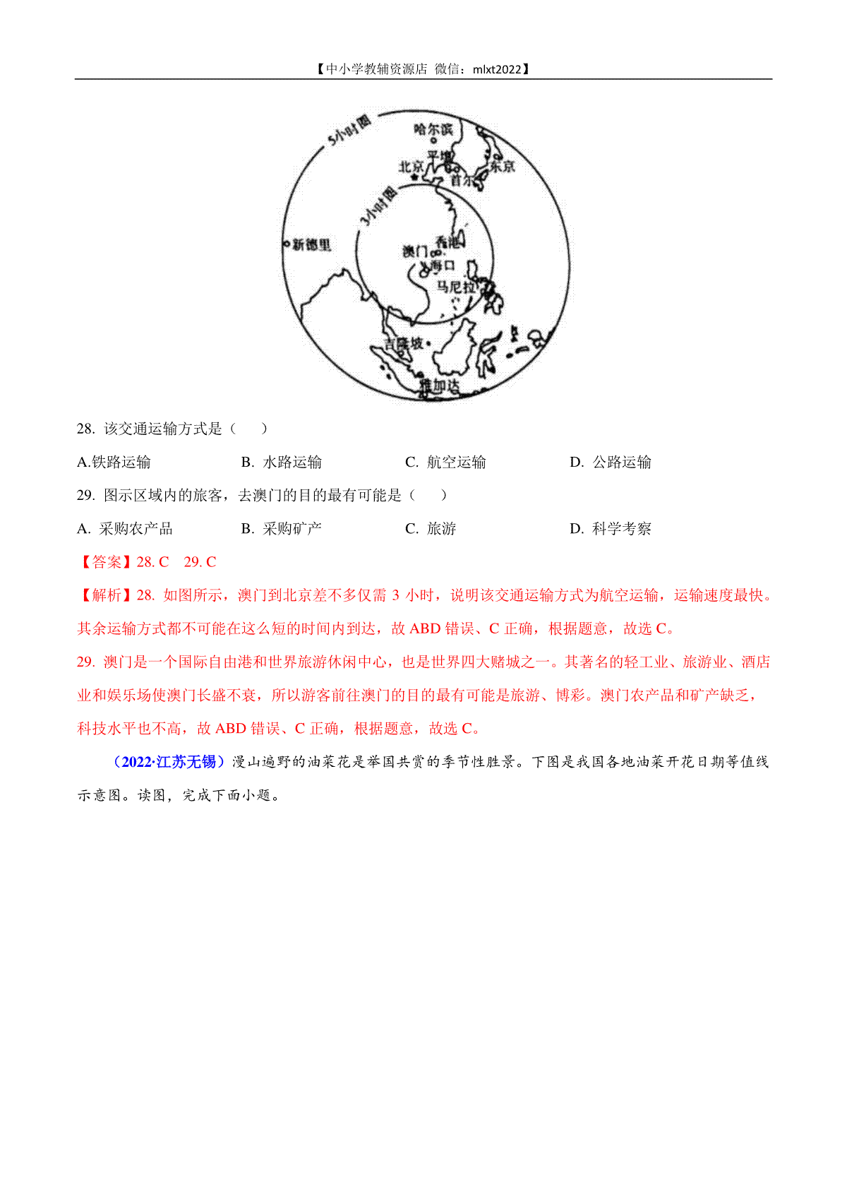 如果你想下载第2期专题15 南方地区2022年中考地理真题分项汇编(全国通用)(解析版)DOC或PDF版,请点击本文末链接!